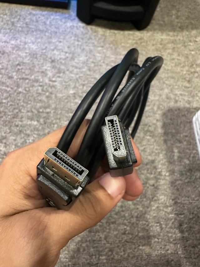 This is a used DisplayPort cable that allows you to transmit high-definition video and audio from your computer to a monitor or other display device. It supports high resolutions and refresh rates, making it ideal for gaming, video editing, and other demanding applications. As this is a used cable, I'm letting it go for a steal! If the ad is up, the cable is available!