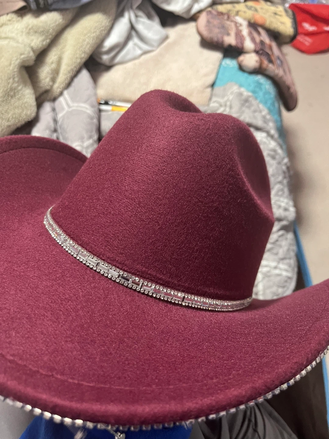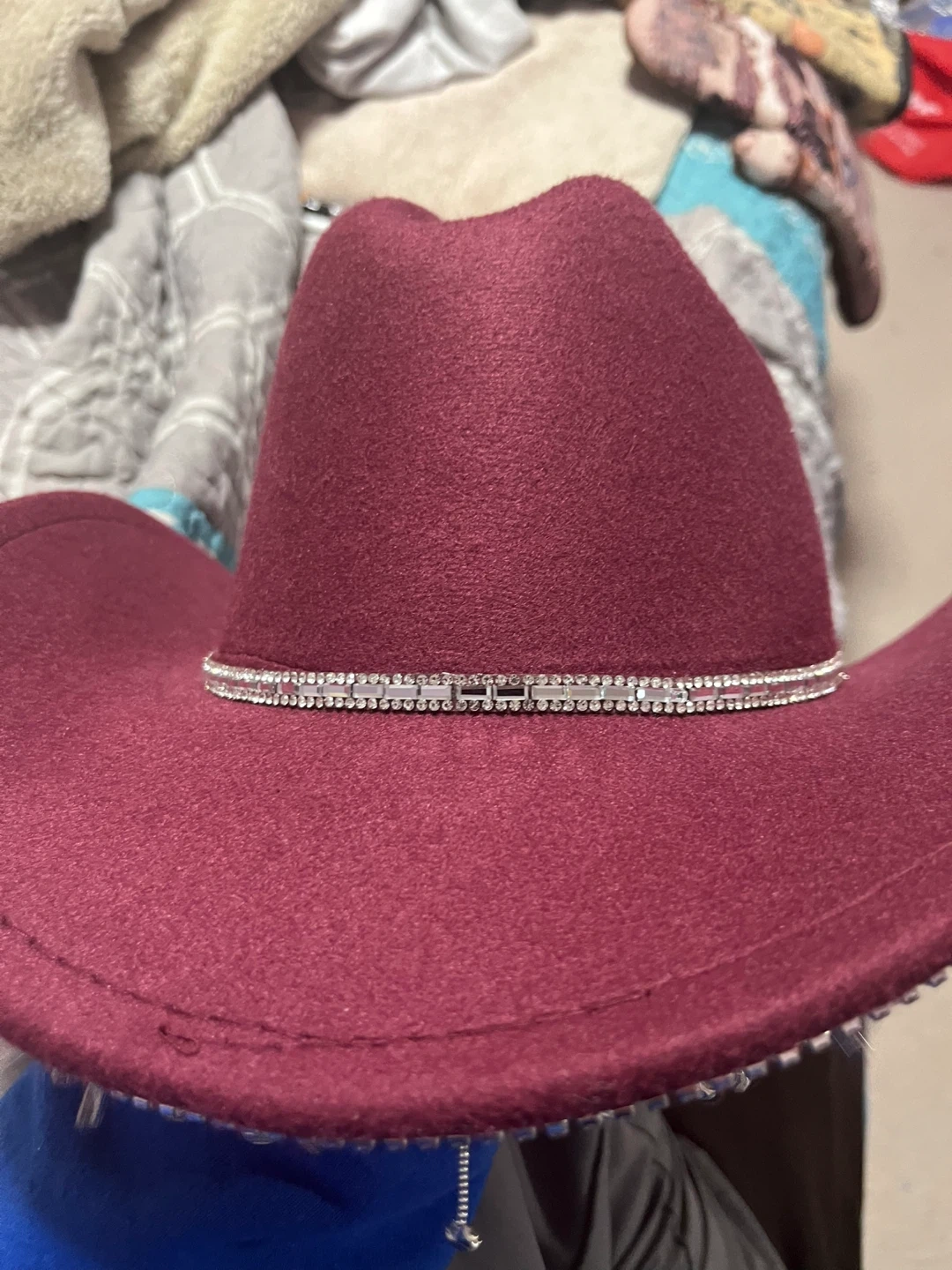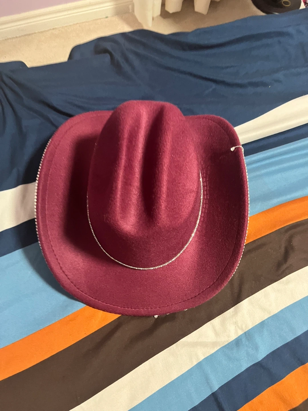 Maroon Cowboy Hat with Rhinestone Fringe