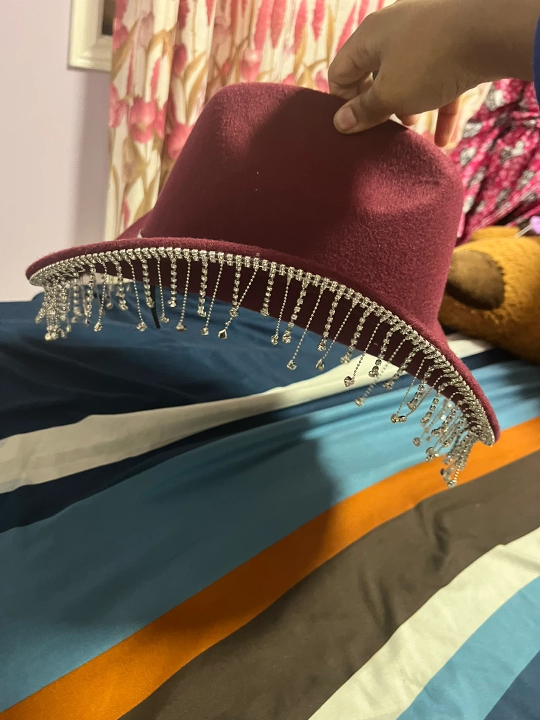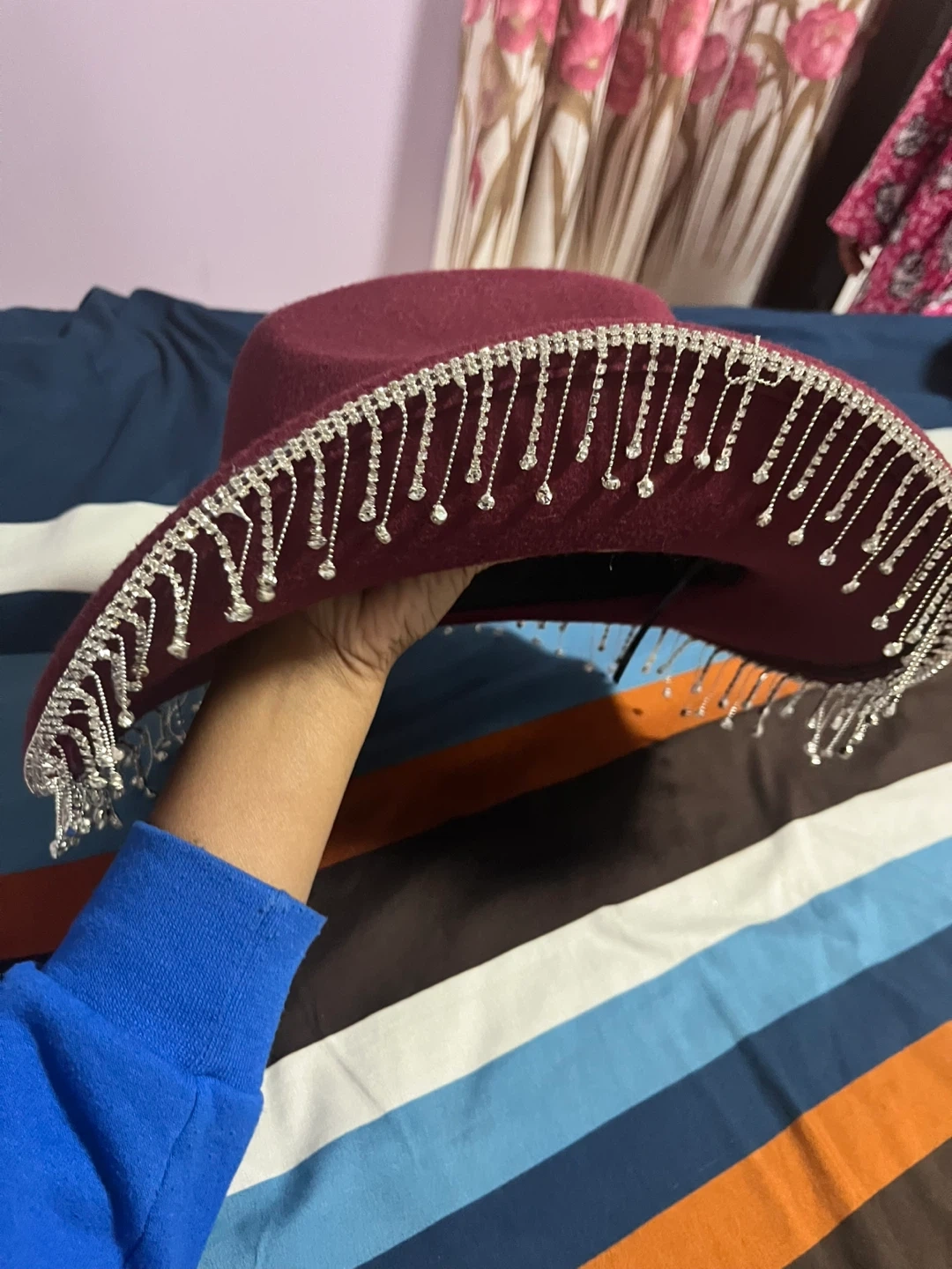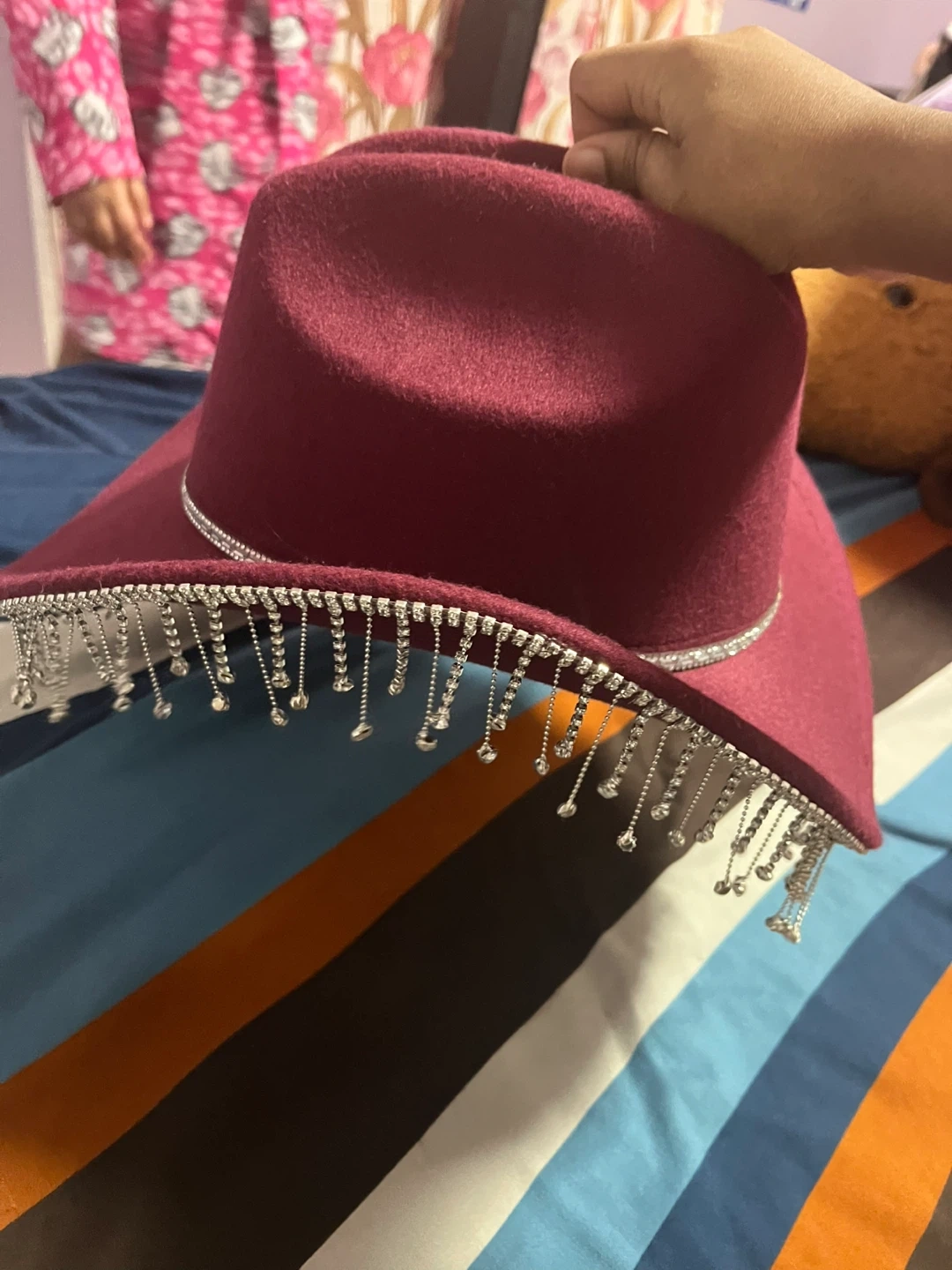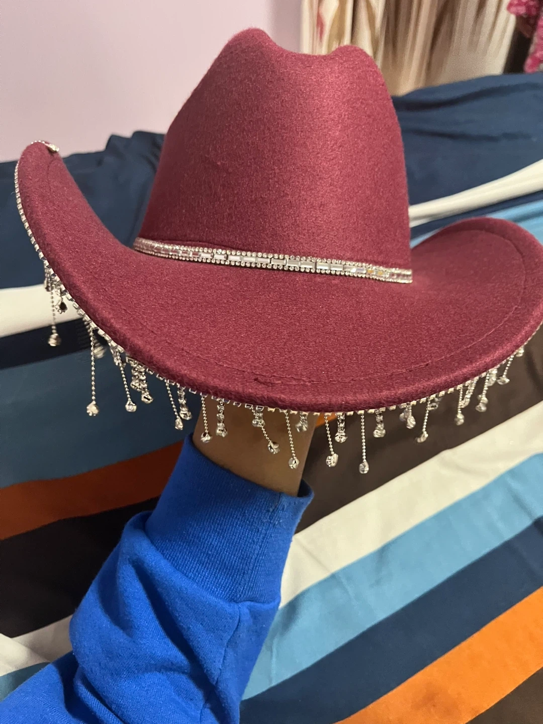 Maroon Cowboy Hat with Rhinestone Fringe