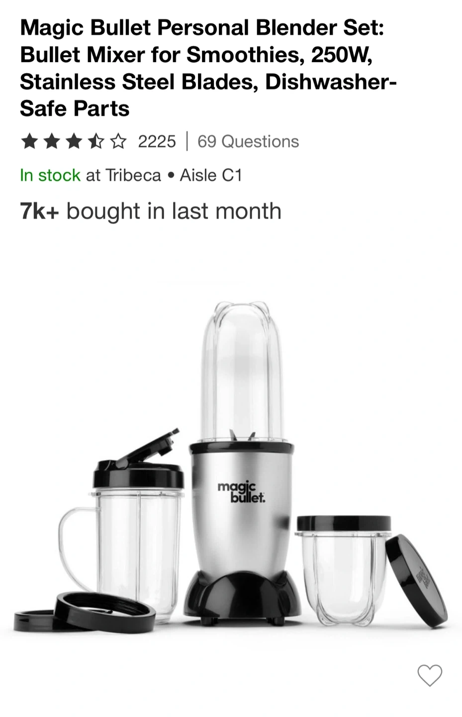 This Magic Bullet personal blender is great for making smoothies and other drinks. It's a 250W model with stainless steel blades. Dishwasher-safe parts make cleanup easy!