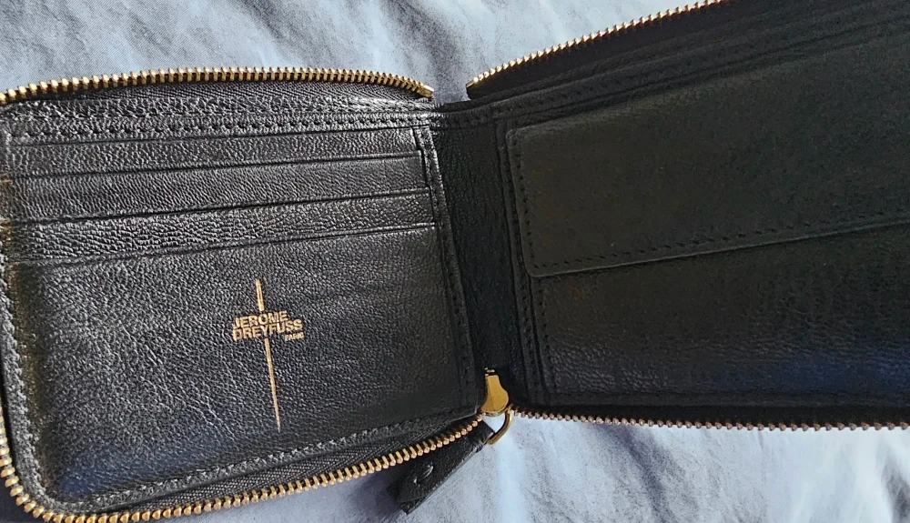 Selling a stylish Jerome Dreyfuss wallet in black leather! It's in great condition and features a zippered closure and several compartments for cards and coins. A chic and practical accessory!