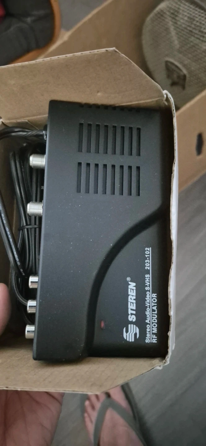 Selling a STEREN Stereo Audio/Video S-VHS RF Modulator. It comes in its original box. Model number: 203-102. It includes the necessary cables for connection