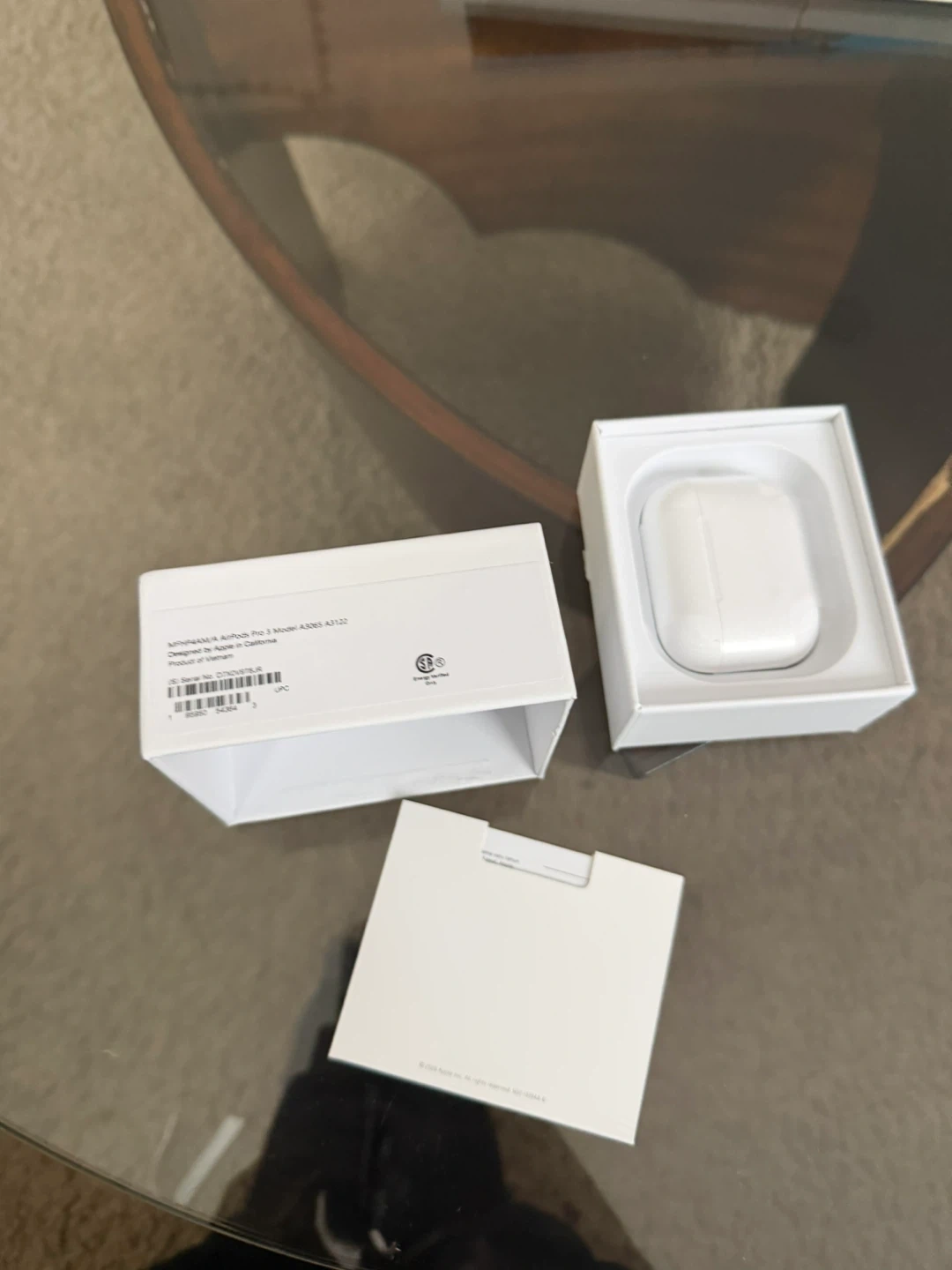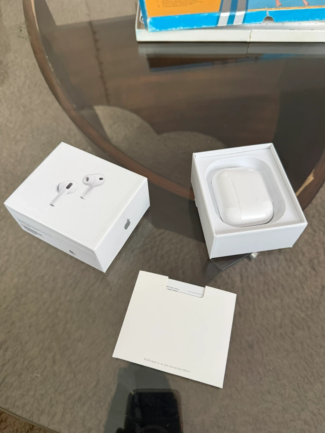 Apple AirPods Pro (2nd generation) with MagSafe Charging Case. Includes AirPods Pro, charging case, and user manual. White colour.