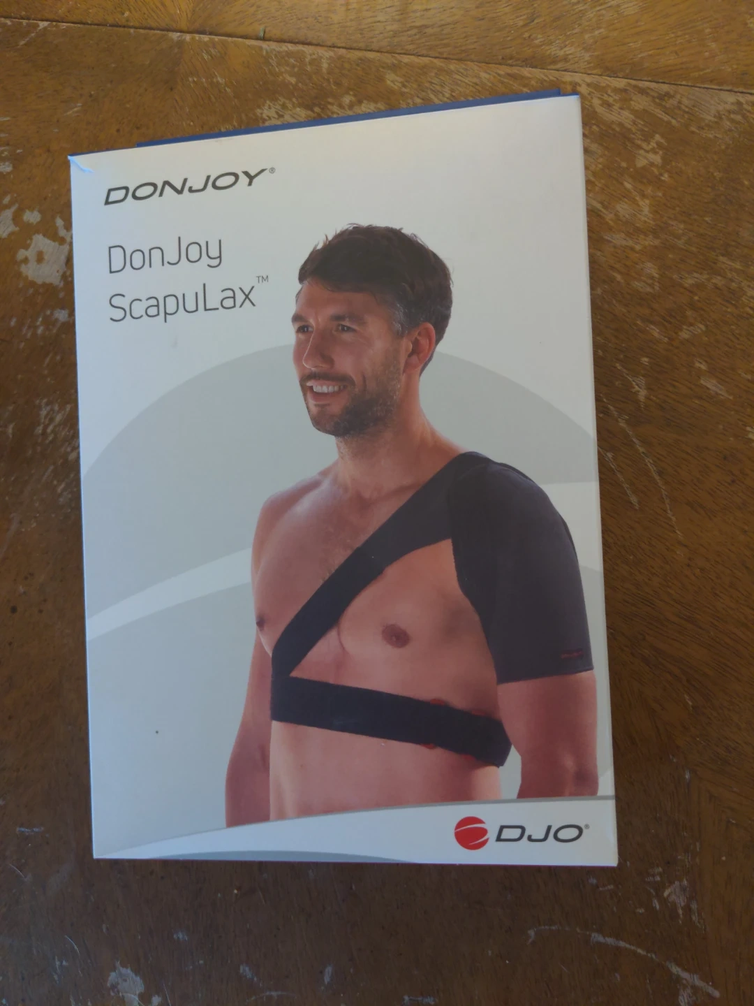 DonJoy ScapulaLax shoulder brace for post-injury and chronic shoulder support. Features an anatomical 3D knit design and breathable, elastic, soft knit material. Includes adjustable elastic straps for a secure fit.