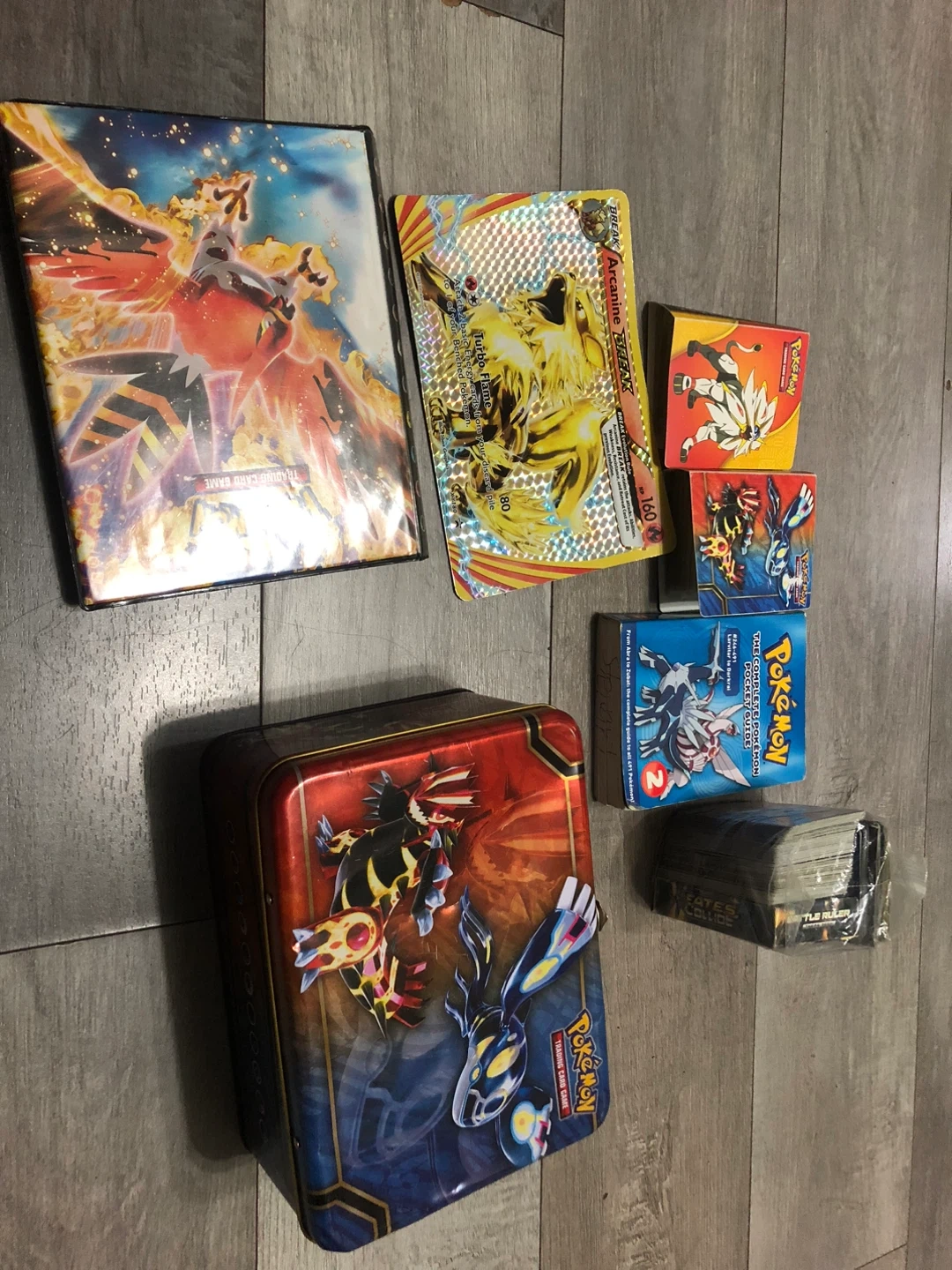 10420 Pokémon cards, including: 221 regular cards 25 older style pokemon cards 2 unique art cards 18 shiny cards 4 legendary cards(latios reshiram and 2 giratinas 4 team plasma cards (2 shiny) Holo Dialga lv.x Shaymin lv.x Hoopa EX Tauros GX Holo Togekiss Kyogre Darkrai G lv.58 Zekrom full card art Mega Charizard EX #13/108 Mega Charizard EX #12/83 Mega Charizard EX #115/122 68 trainer cards 52 energy cards 15 online booster pack code cards 1 pikachu coin 1 pokemon the complete pokemon pocket guide book 2 Package deal only no single card or specific sales.