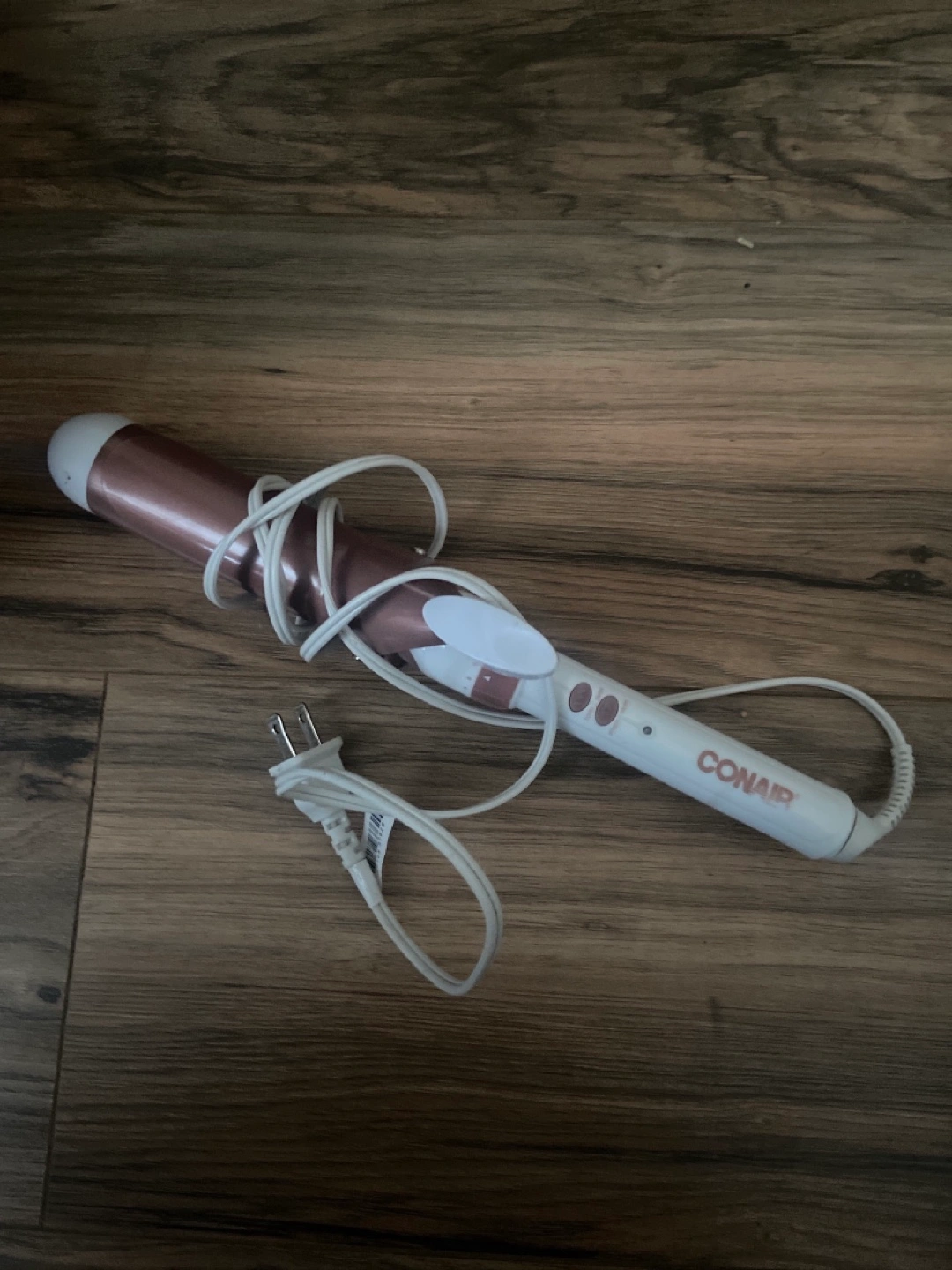 1000+Used Conair curling iron. Rose gold barrel, white handle. Includes power cord.