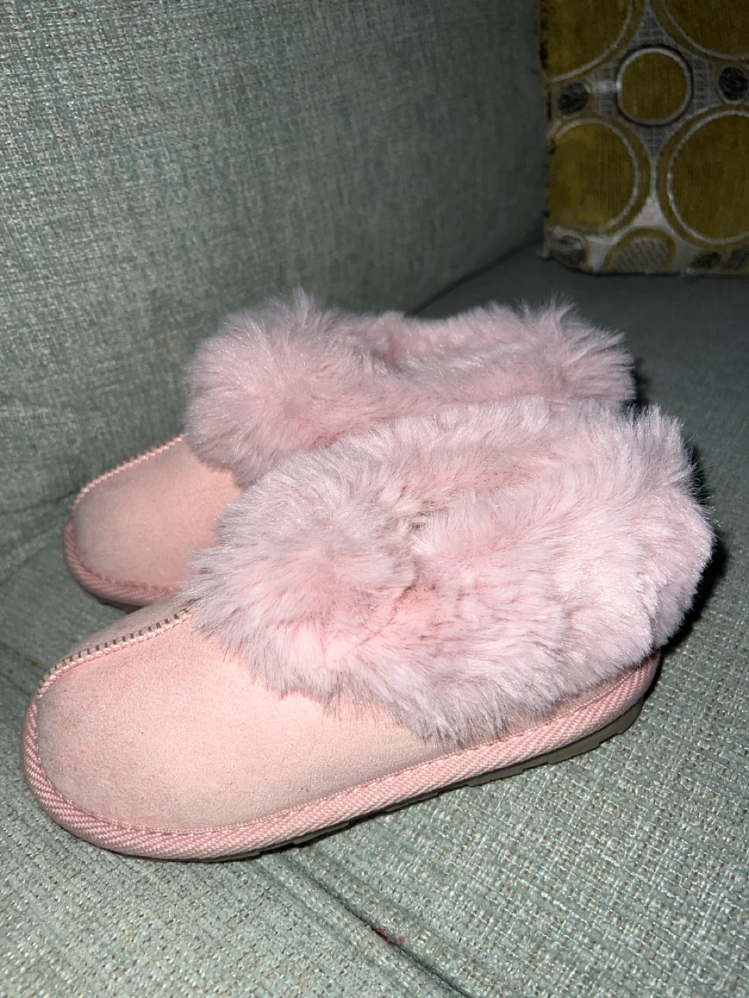 1000+Adorable pink fuzzy slippers. Size 10. Soft and cozy. Perfect for keeping your feet warm. Cold weather calls for cozy comfort will provide the ultimate in warmth and comfort on cool winter days.