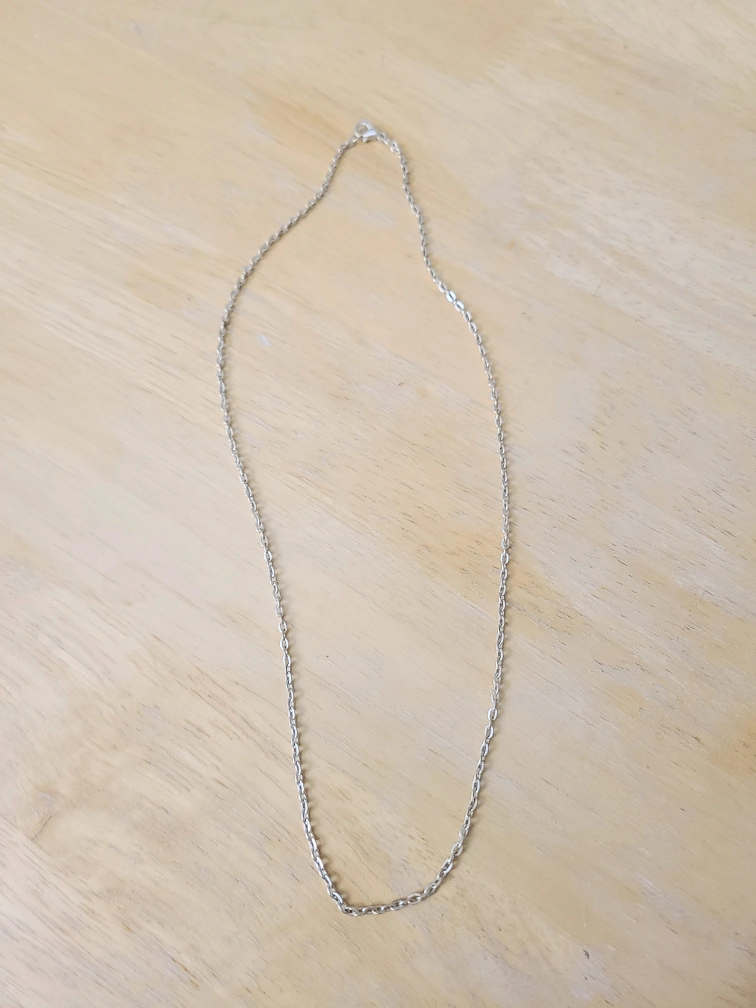 161Simple silver chain necklace. Great for layering or wearing alone. Lightweight and delicate.