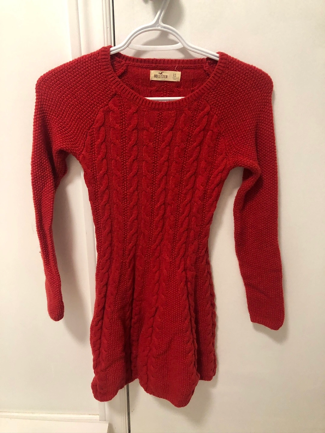 🏈 Hollister women's size XS red long sleeve cable knit dress