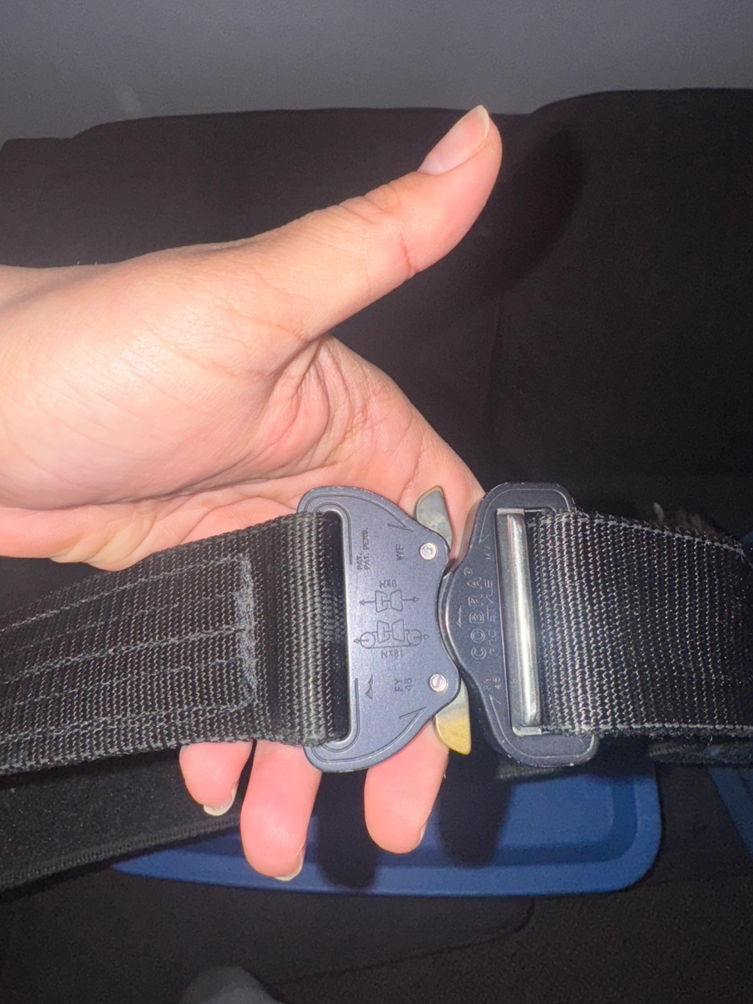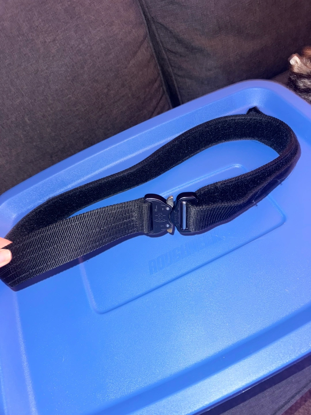 Black nylon tactical belt. Features a Cobra Pro Style steel buckle. Durable and strong. Only worn for a year. Is super adjustable. Went from a XXL to an XL and it was able to tighten the whole time. Got lots of life left.