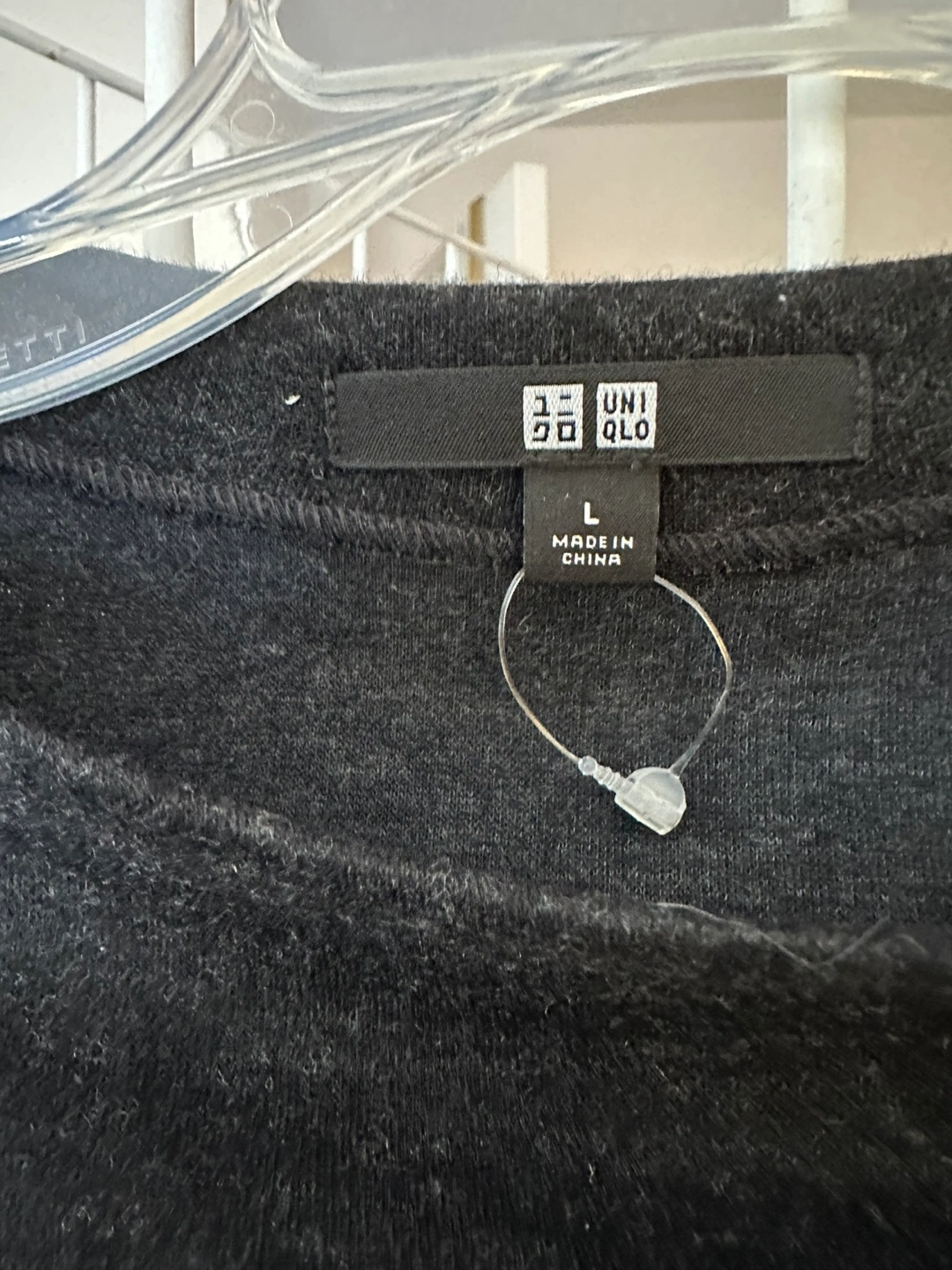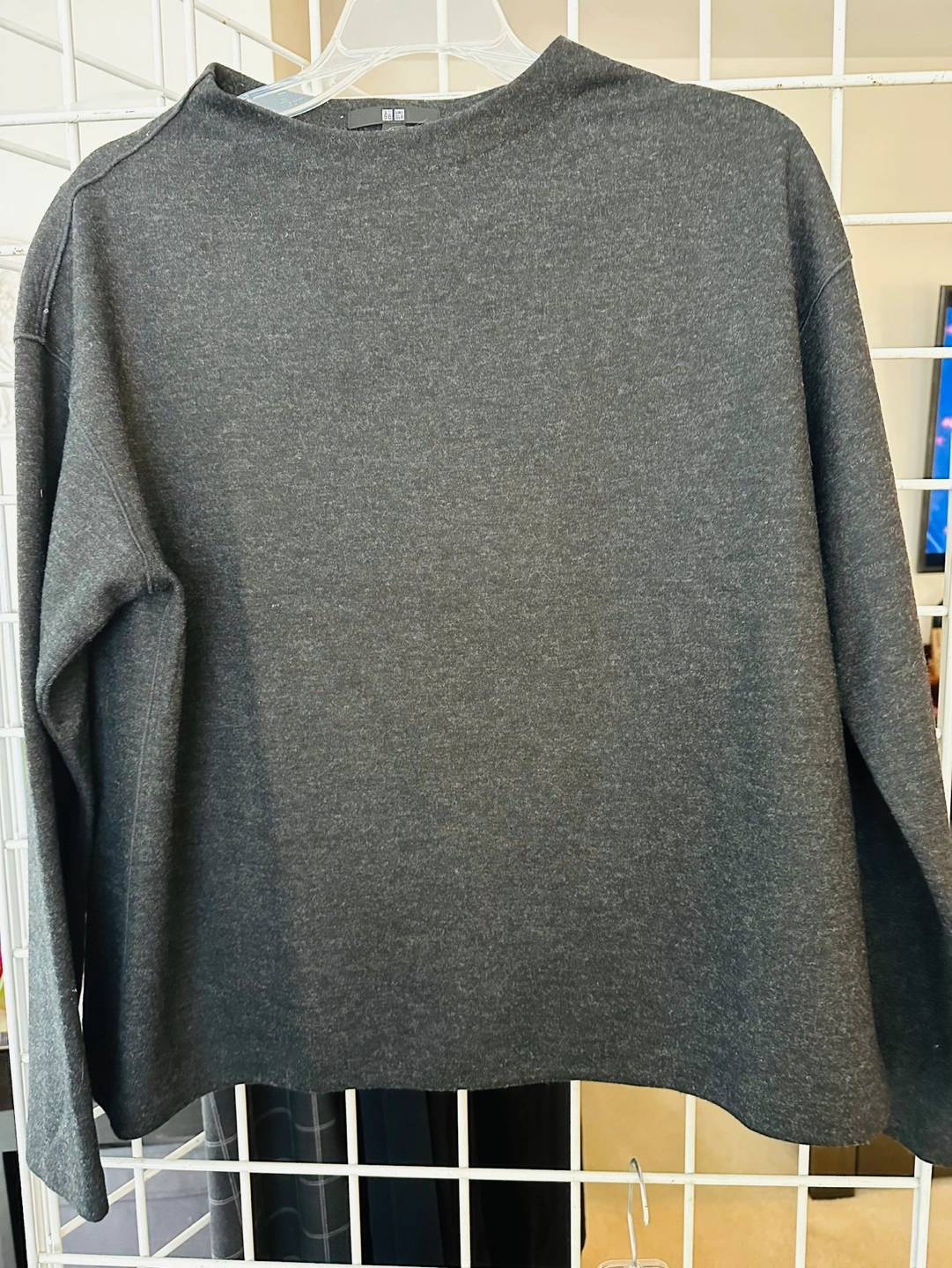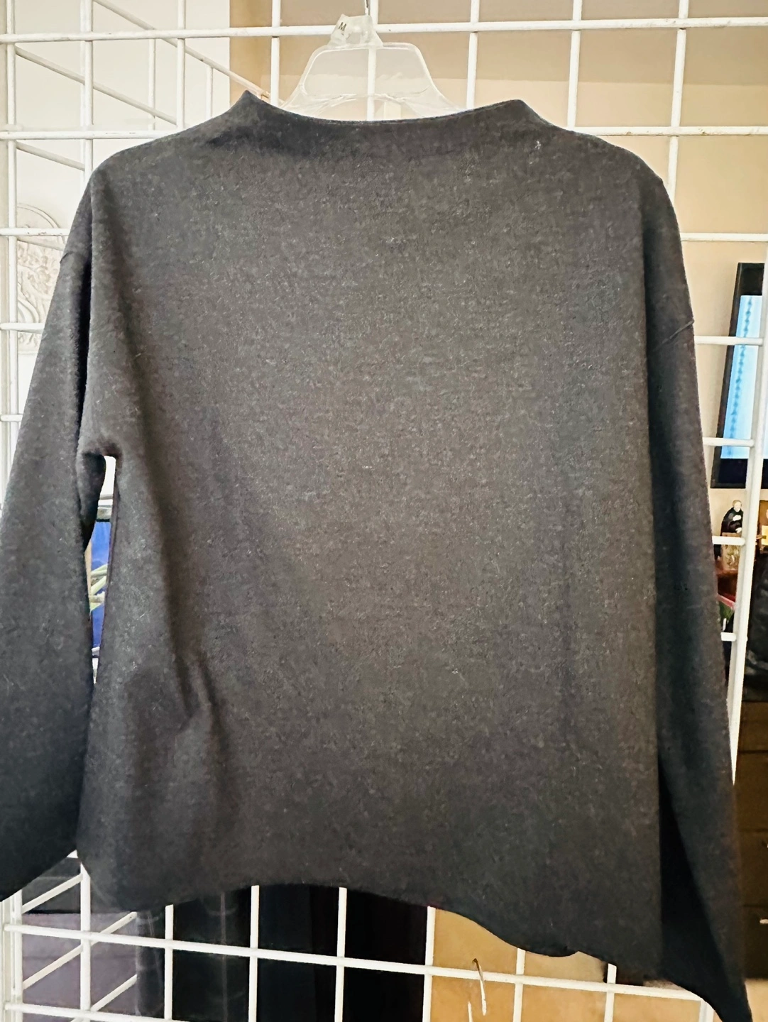 Dark grey long sleeve sweater. Size large. Soft material. Relaxed fit. Made in China.