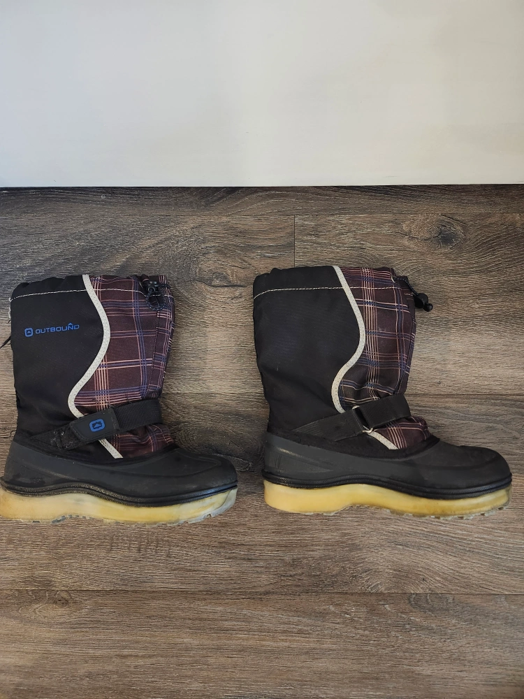 Outbound winter boots Size 13. Black with plaid accents. Good condition. Water-resistant outer shell. Warm lining. Easy closure system.