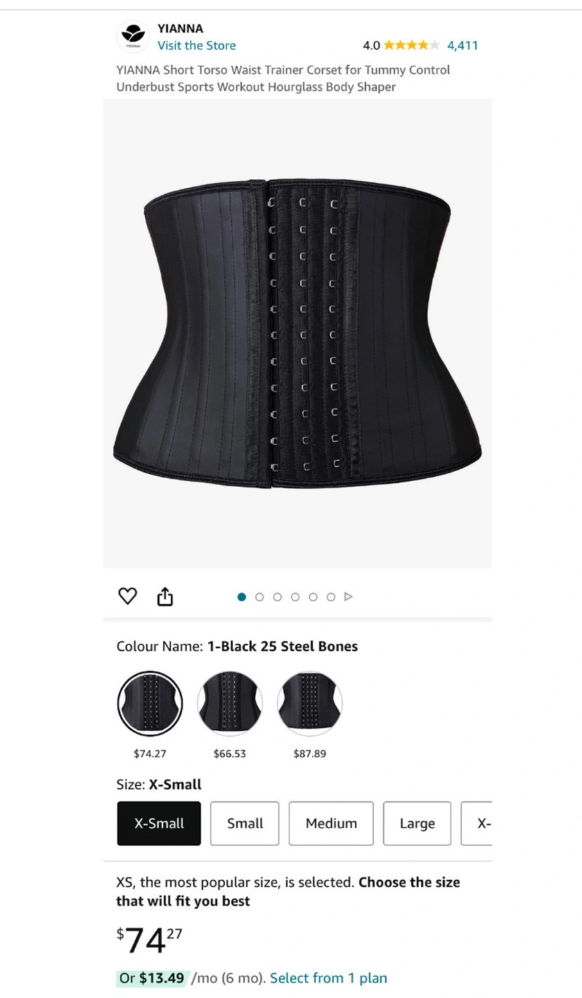 YIANNA Short Torso Waist Trainer Corset for Tummy Control Underbust Sports Workout Hourglass Body Shaper *SIZE XS