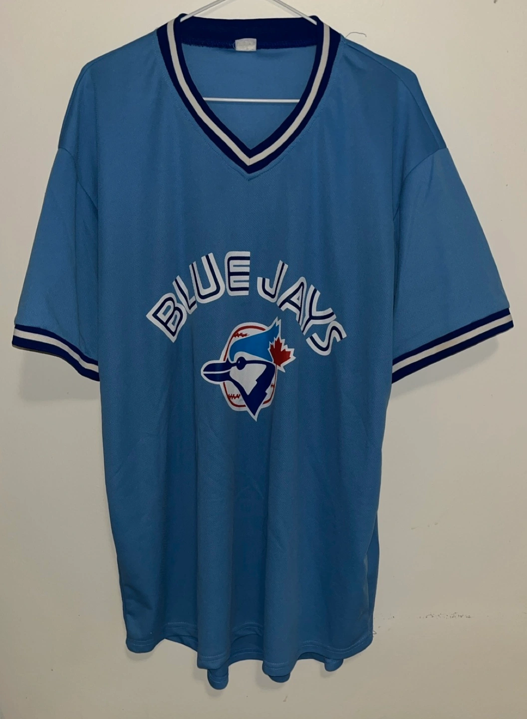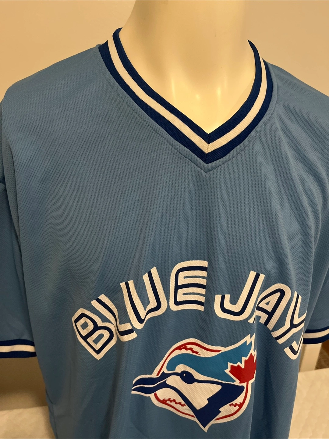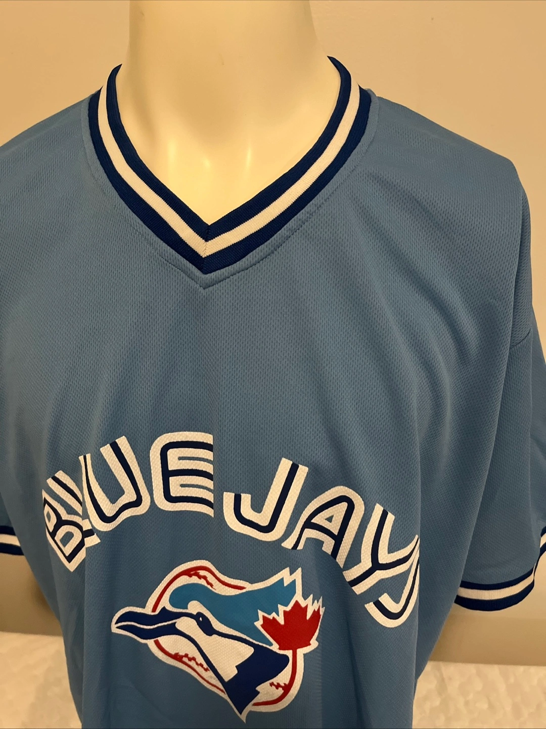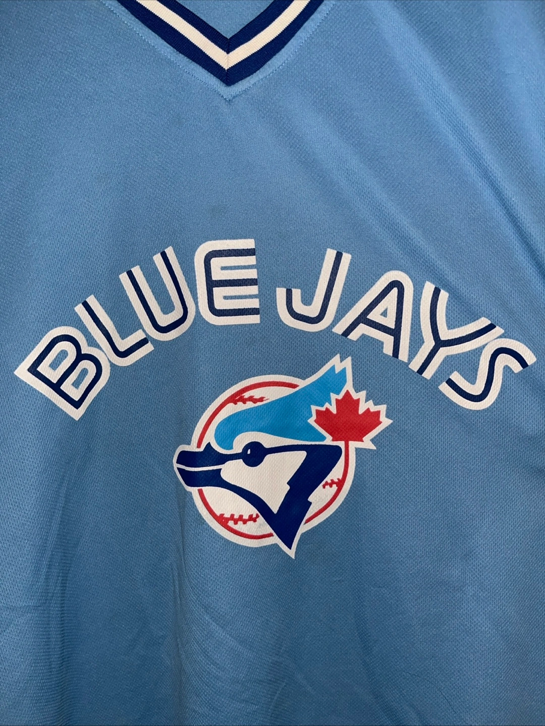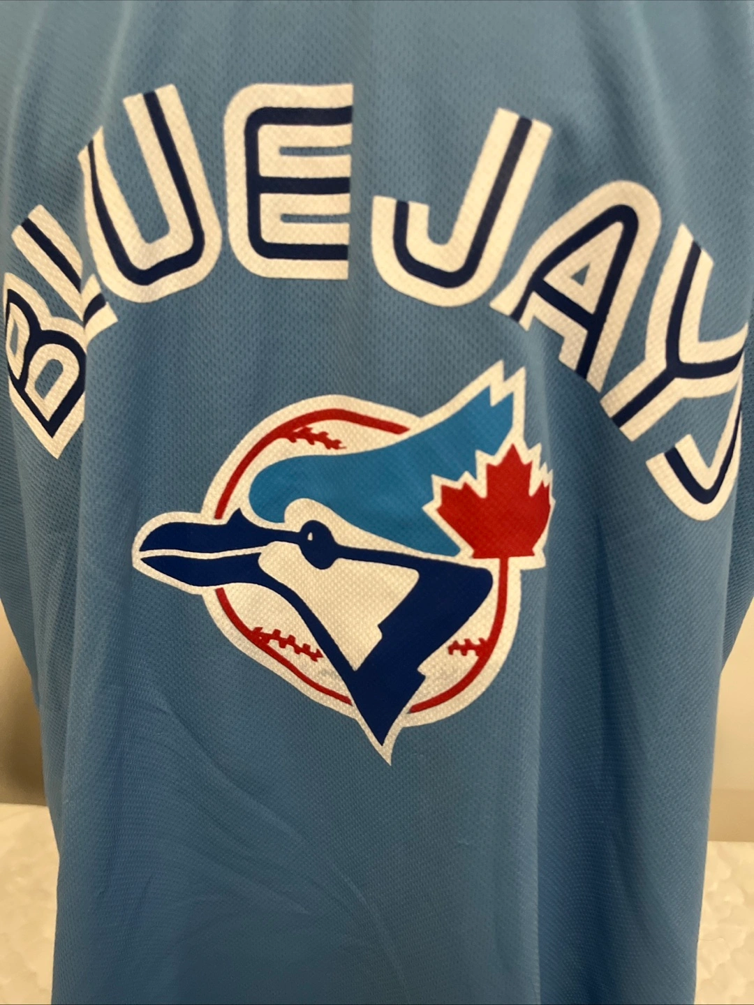 Show your Toronto Blue Jays pride with this XL George Bell #11 powder blue baseball jersey. Perfect for any baseball fan, this jersey is a must-have for game days or casual wear. Made for unisex adults, this jersey is a great addition to any fan's collection. Get your hands on this limited jersey as a special giveaway item.