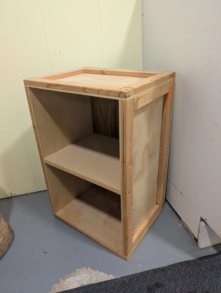 There's no finish on this. It's basic but gets the job done! Would look great with some finish or paint on it, or you can use it as is. I'll upload dimensions soon. There are two of these available.