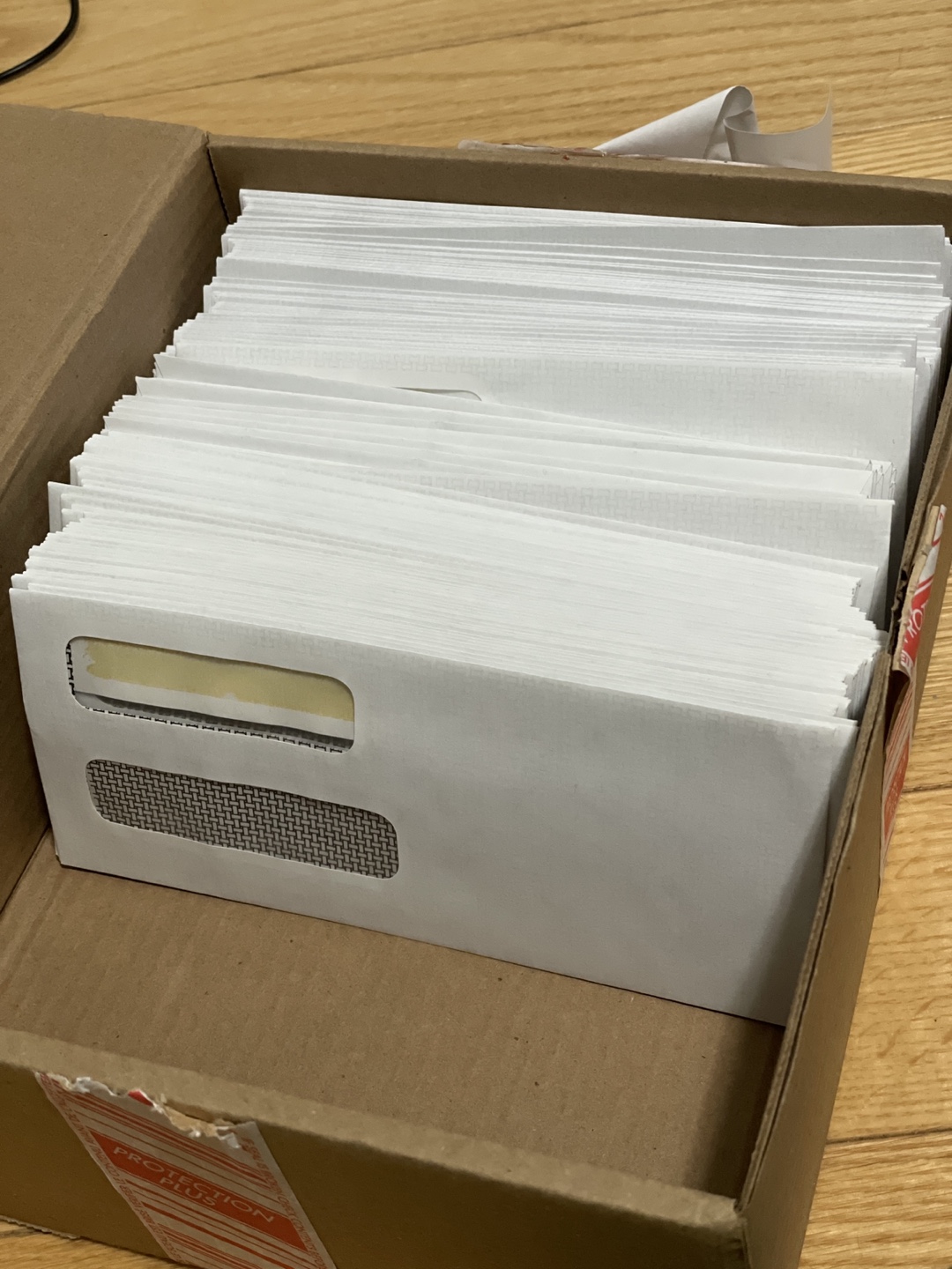 Half box of windowed cheque envelopes. Pickup queens quay and yonge. If interested send me a message with what day & time you could pick up. Thanks!