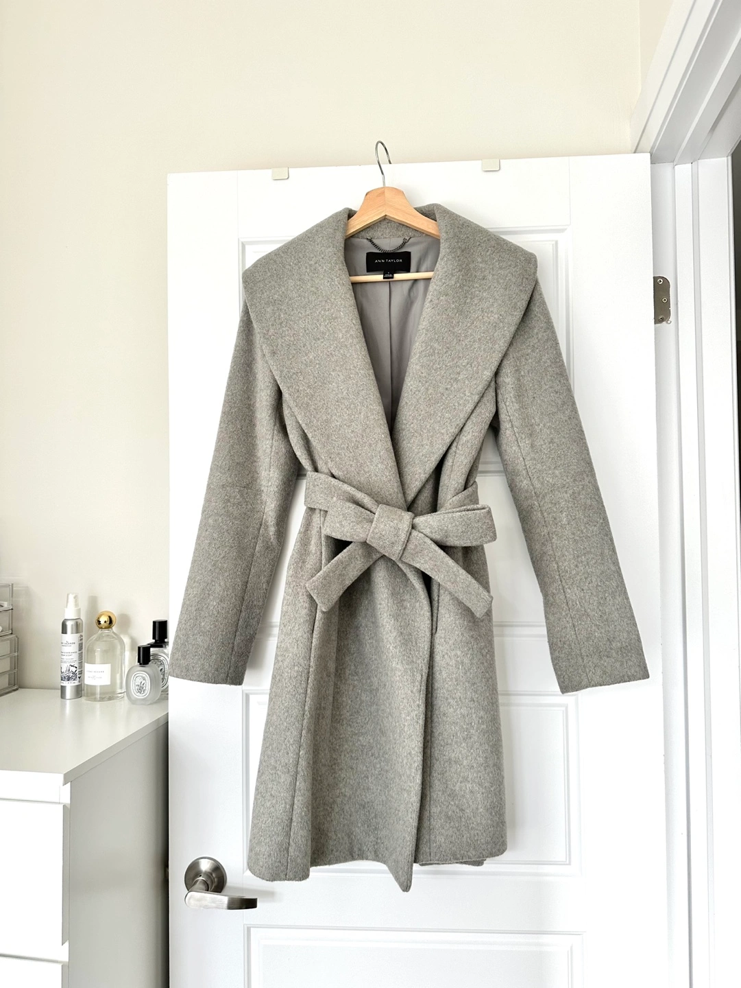 Beautiful grey wool belted wrap coat by Ann Taylor
