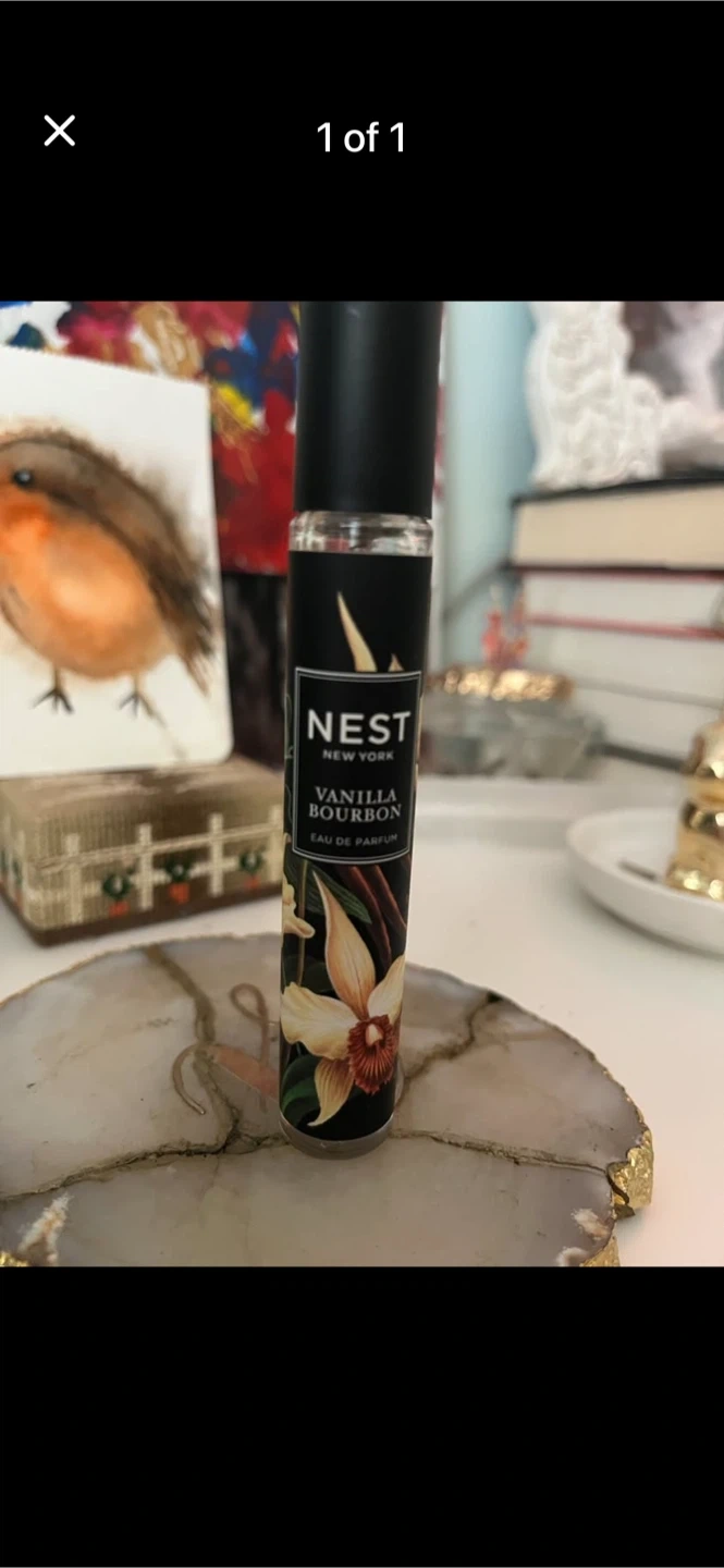 NEST New York Vanilla Bourbon Eau de Parfum rollerball. This scent combines rich vanilla and warm bourbon notes. It's an eau de parfum formulation.