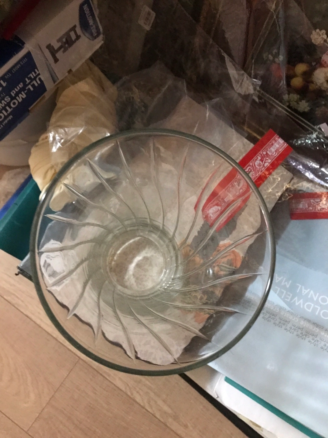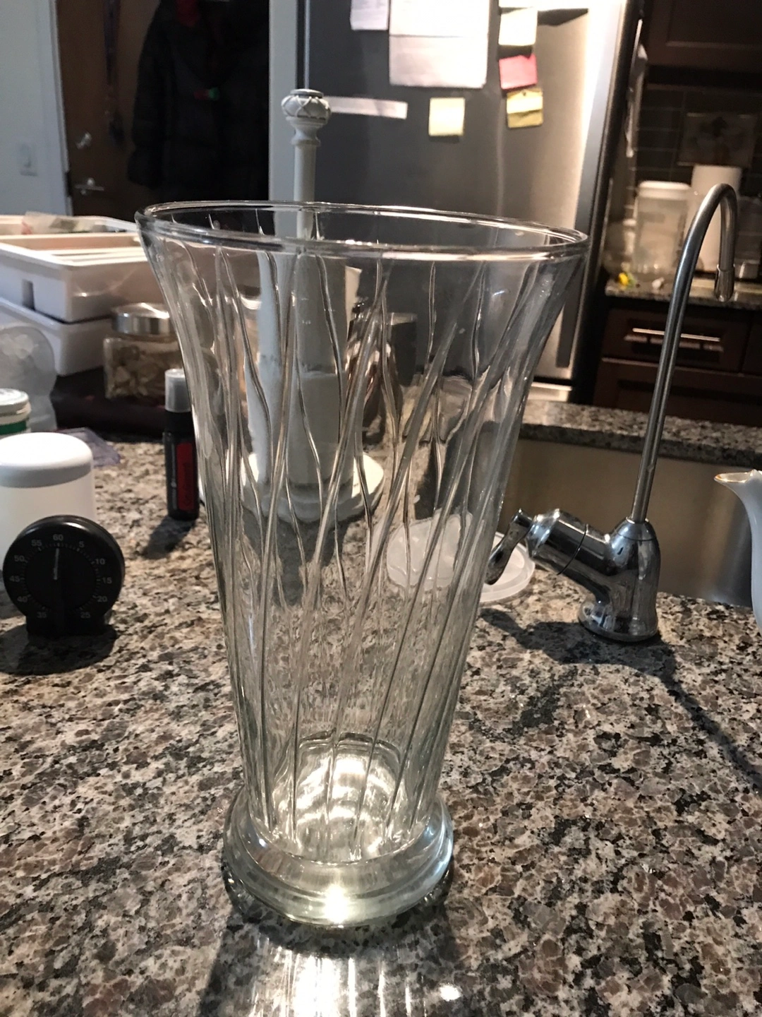 Tall clear glass vase. Unique vertical etched design. Perfect for displaying flowers or as a decorative piece. In good condition.