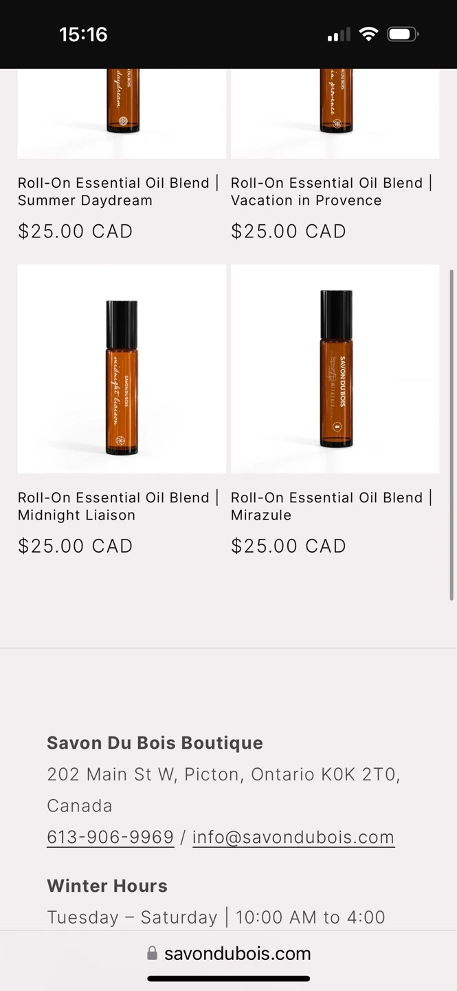 Into the woods scent roll-on essential oil blend from Ontario (Prince Edward County) brand Savon du Bois.