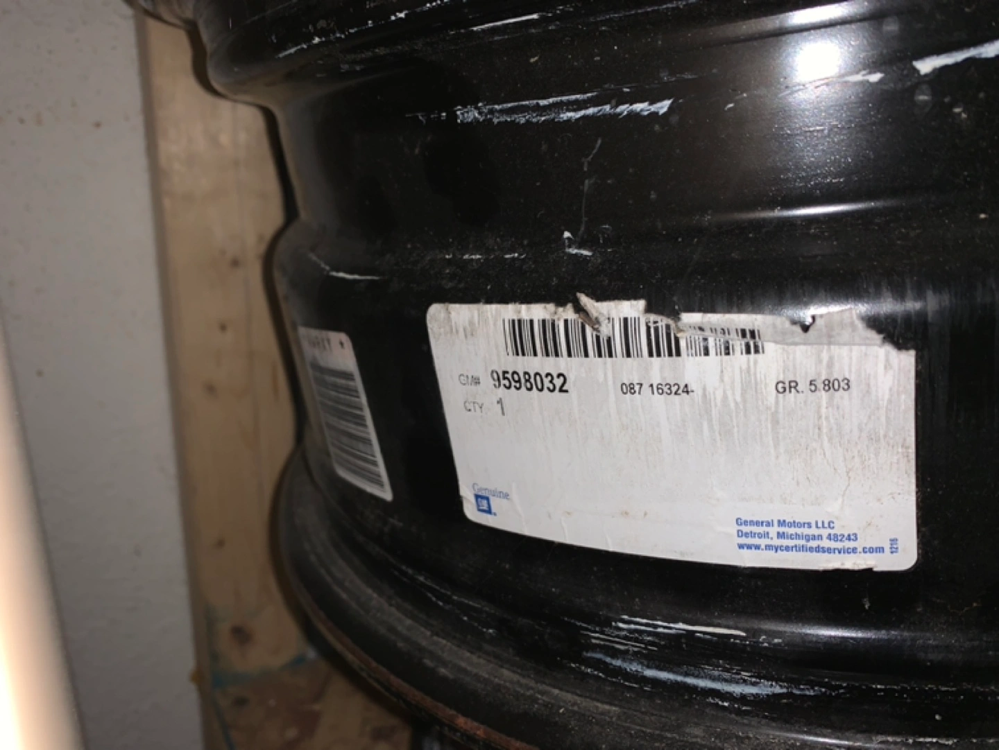 Must be sold!Genuine GM part. 17 inch diameter, 7 inch width, 39 mm offset. Painted black finish. Part number 9598032. May require additional hardware for installation.