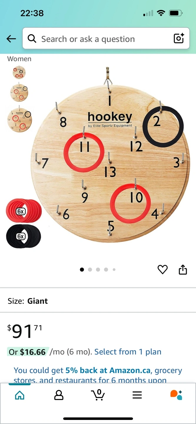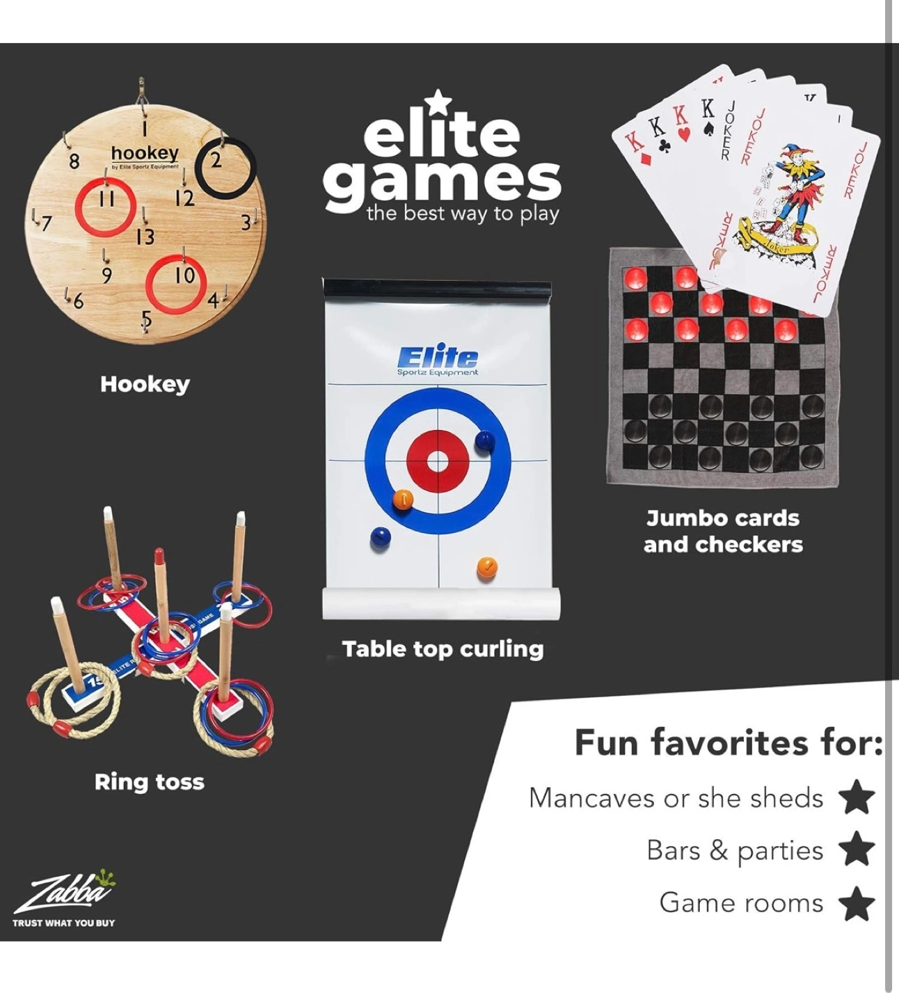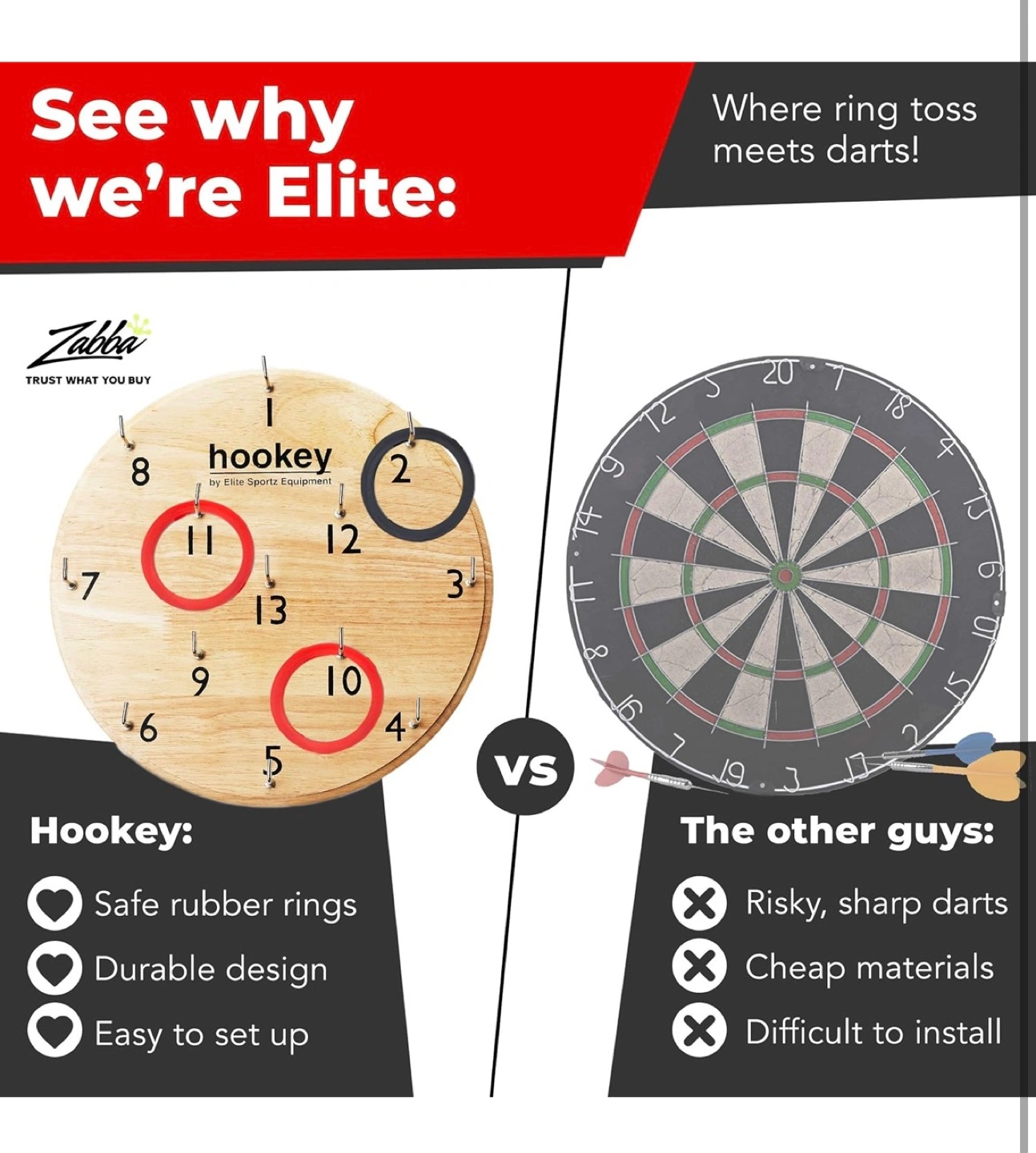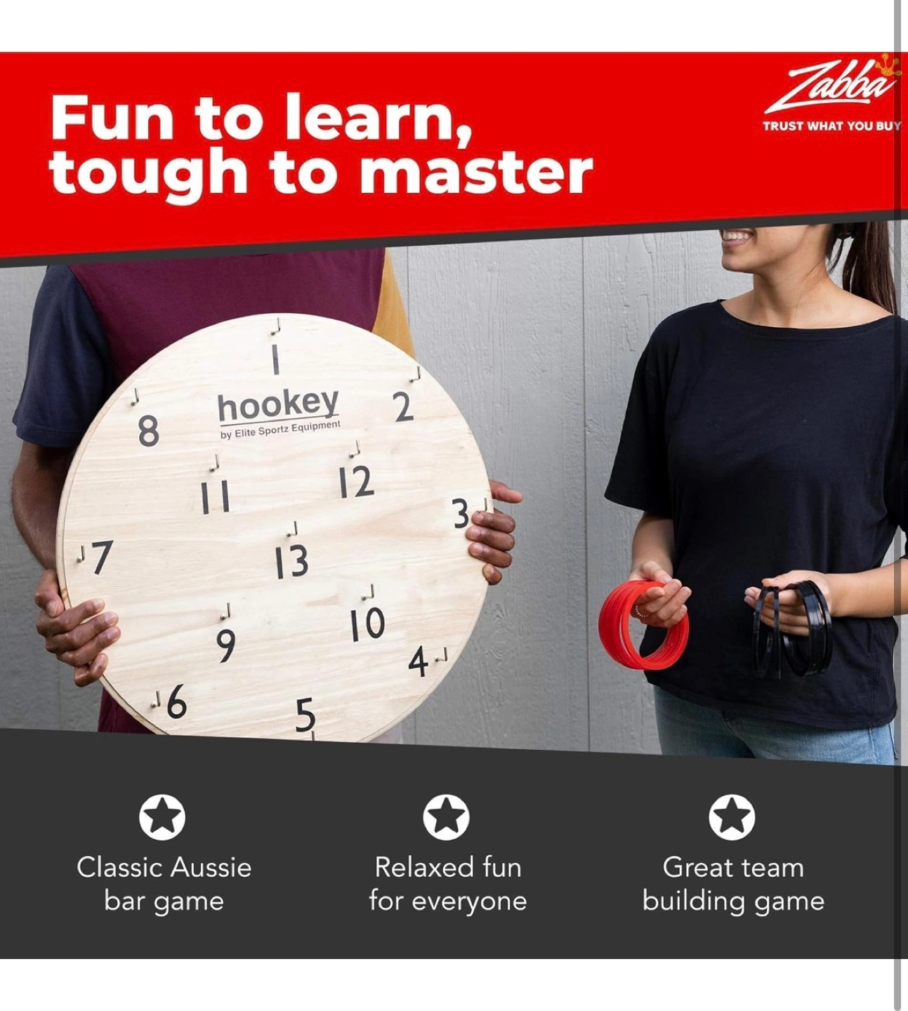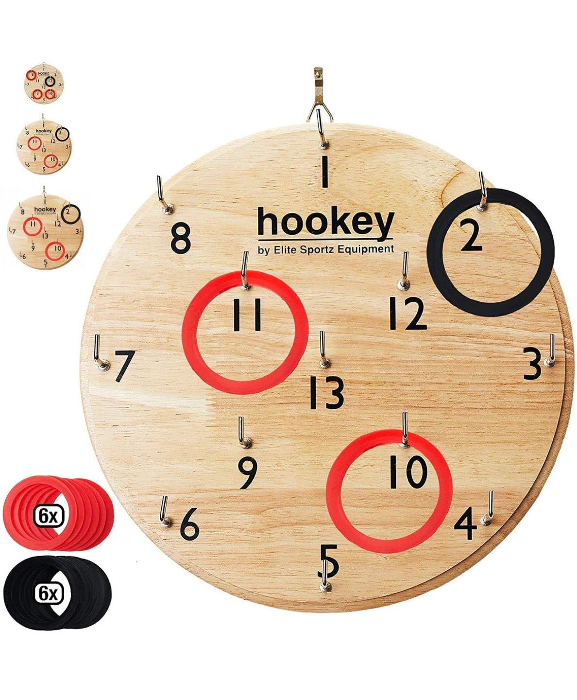 Fun outdoor game. Includes wooden board, six red rings, six black rings, and mounting hardware. Three sizes available. Easy setup. Durable design. Quality materials. Fun for all ages.