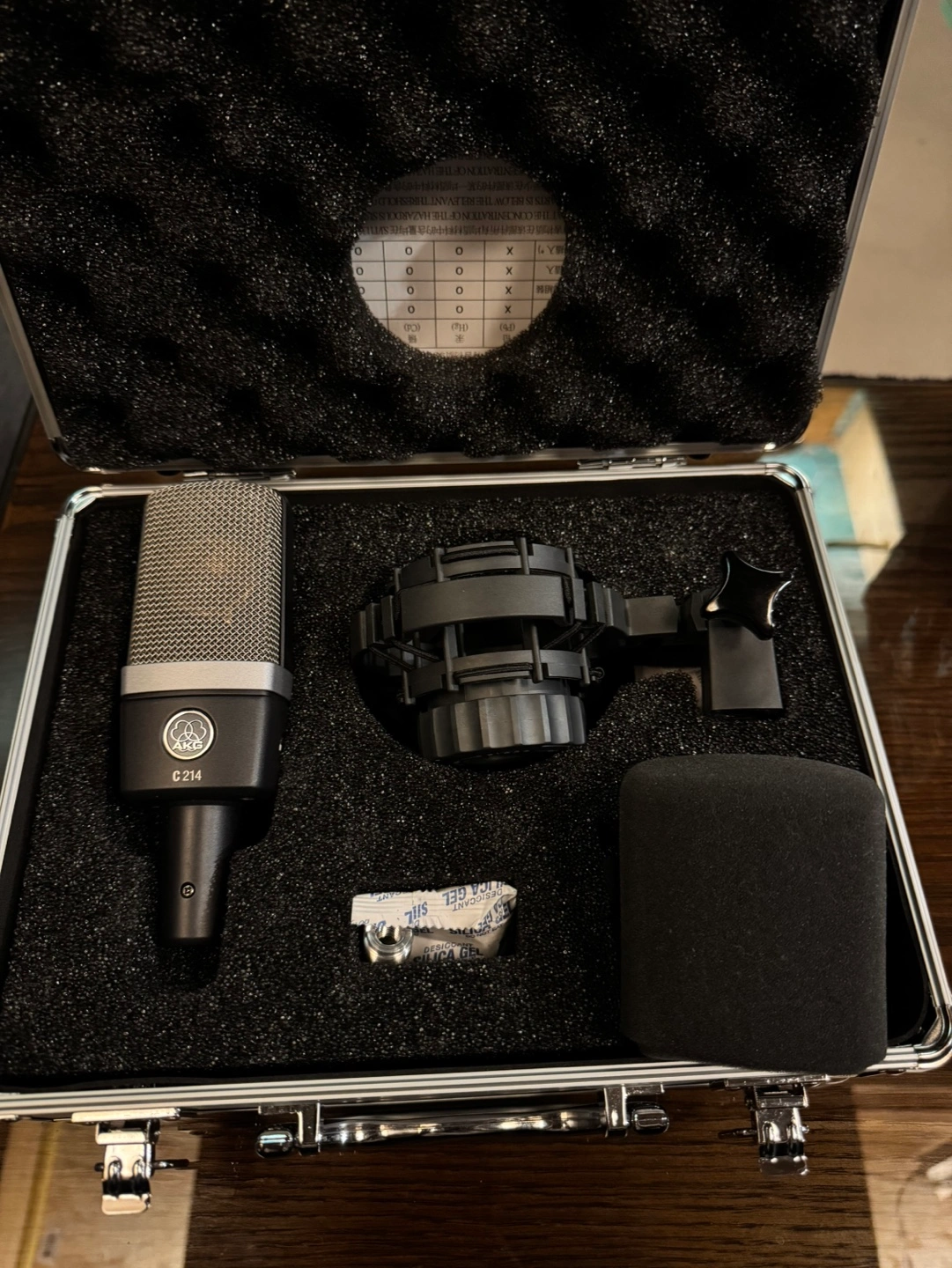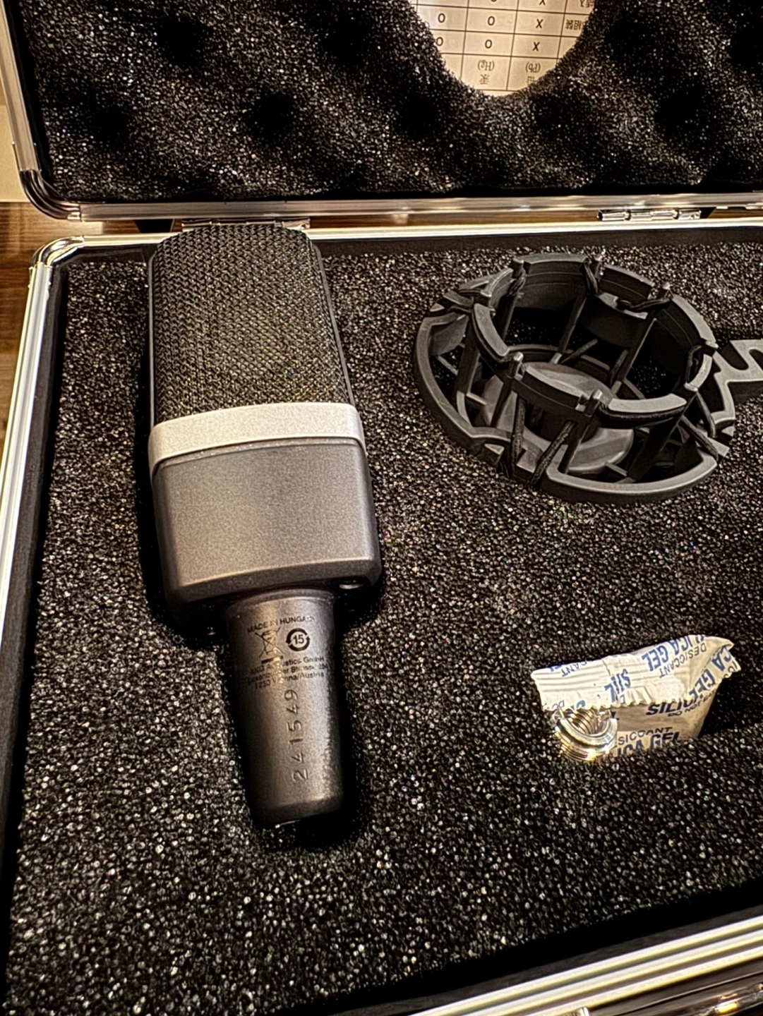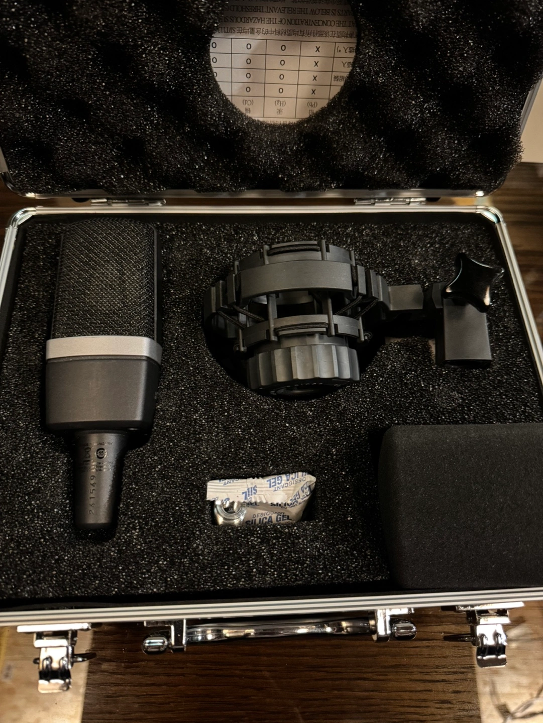 Large-diaphragm condenser microphone. Includes shock mount, carrying case, and accessories. Great for studio recording and vocal applications.