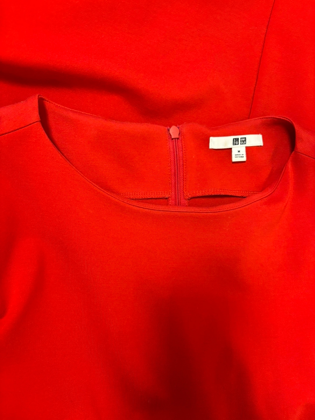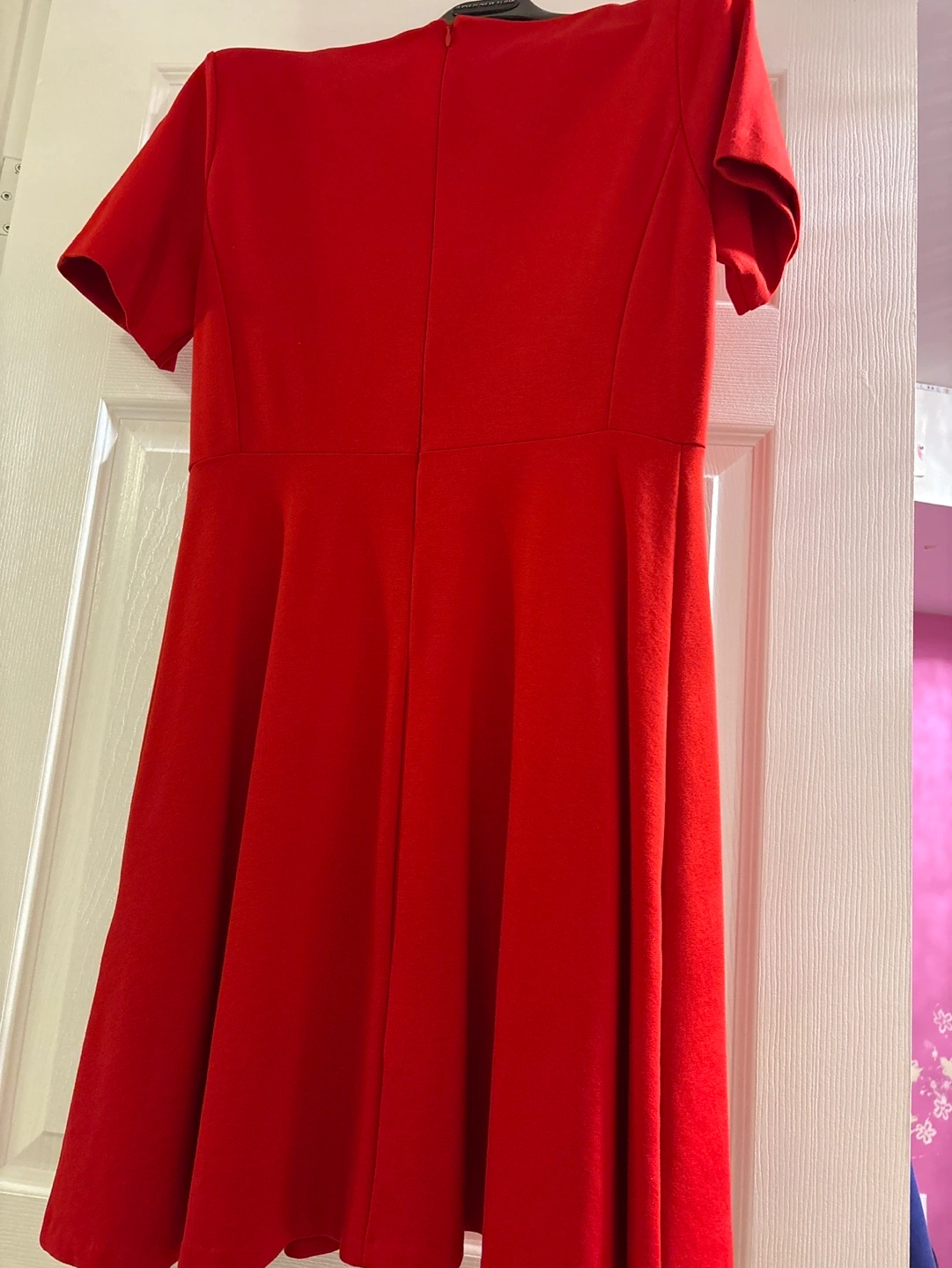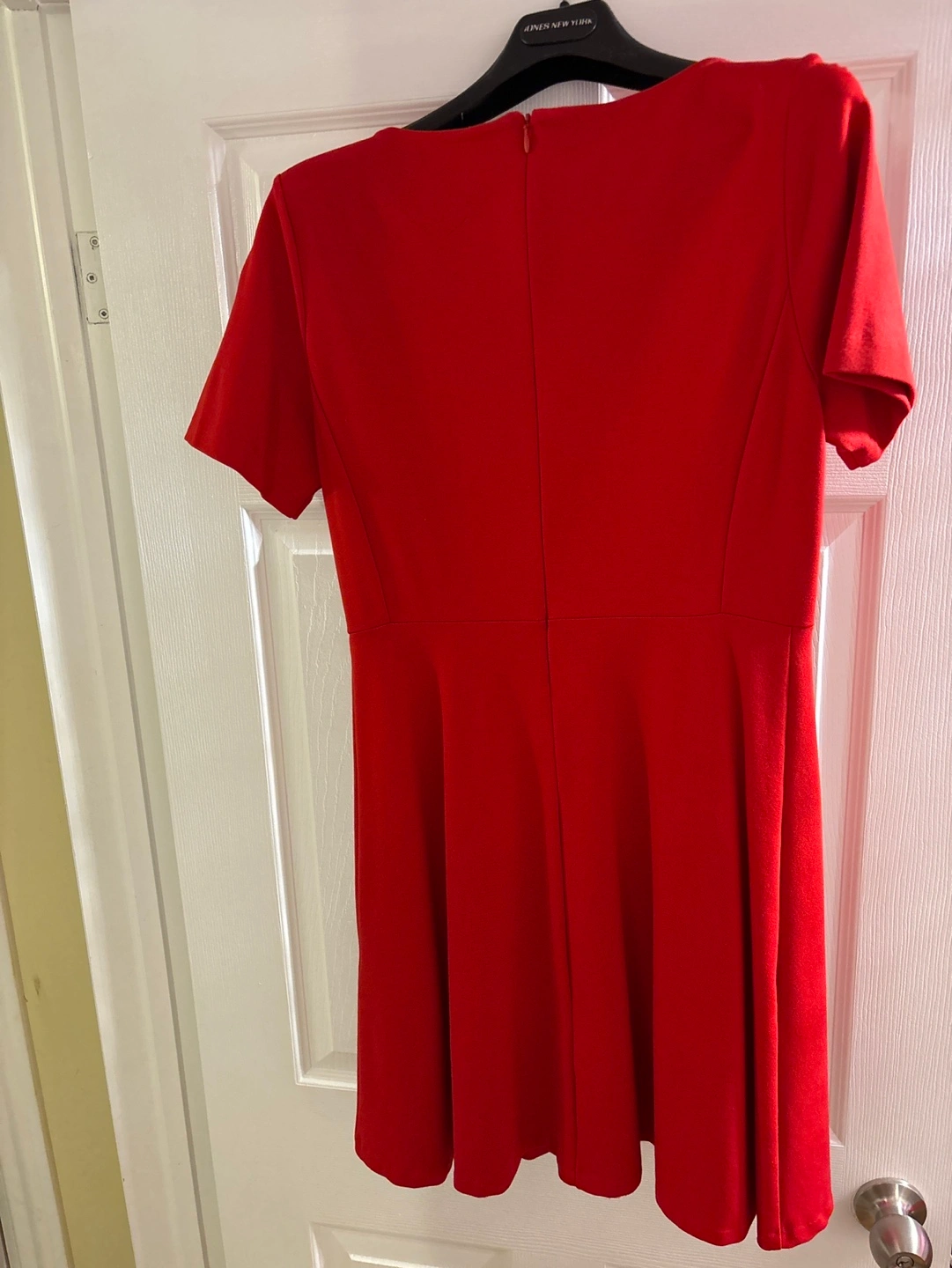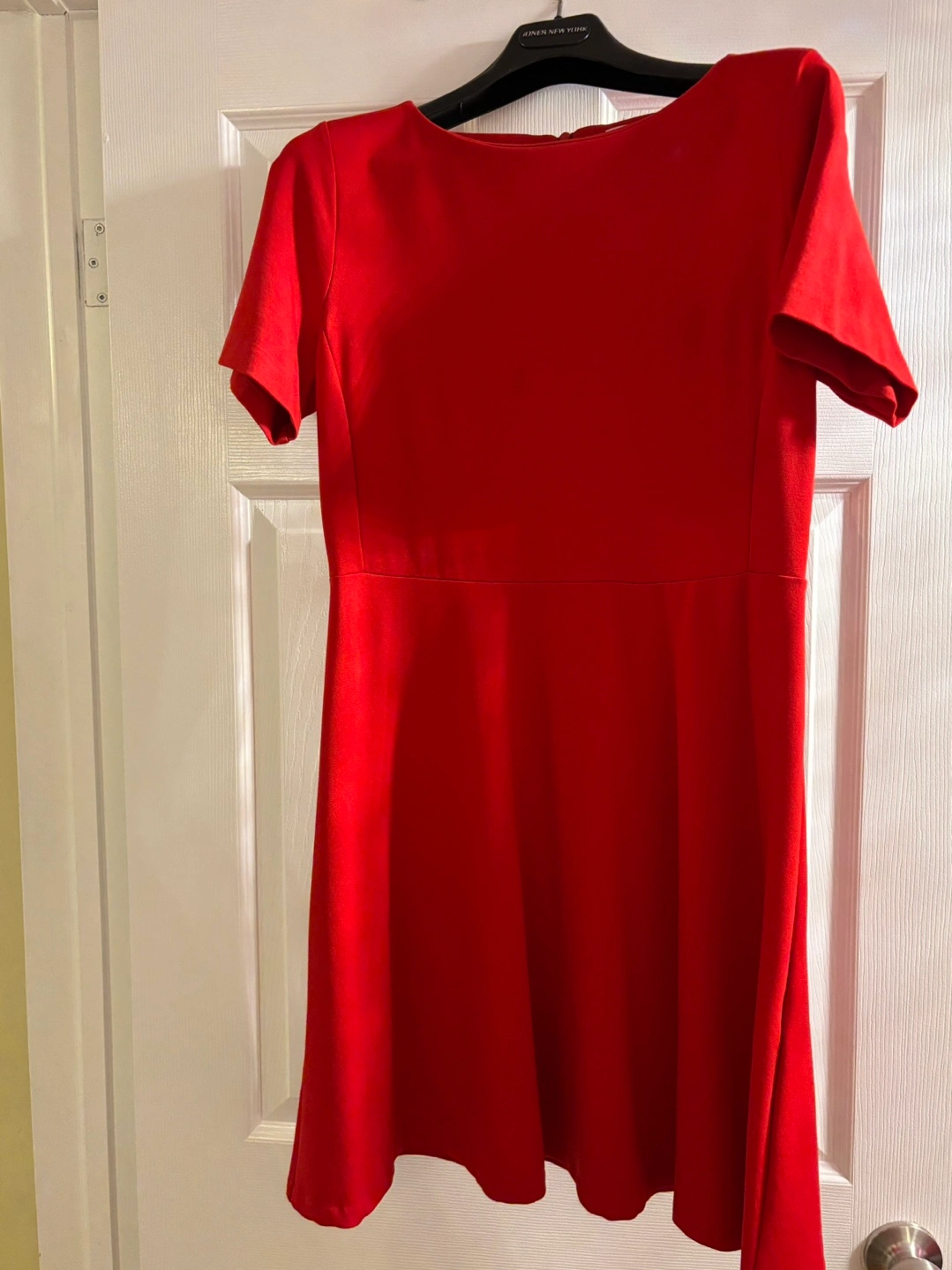 Red short-sleeved fit and flare dress. Back zipper. Size Medium. Excellent condition.