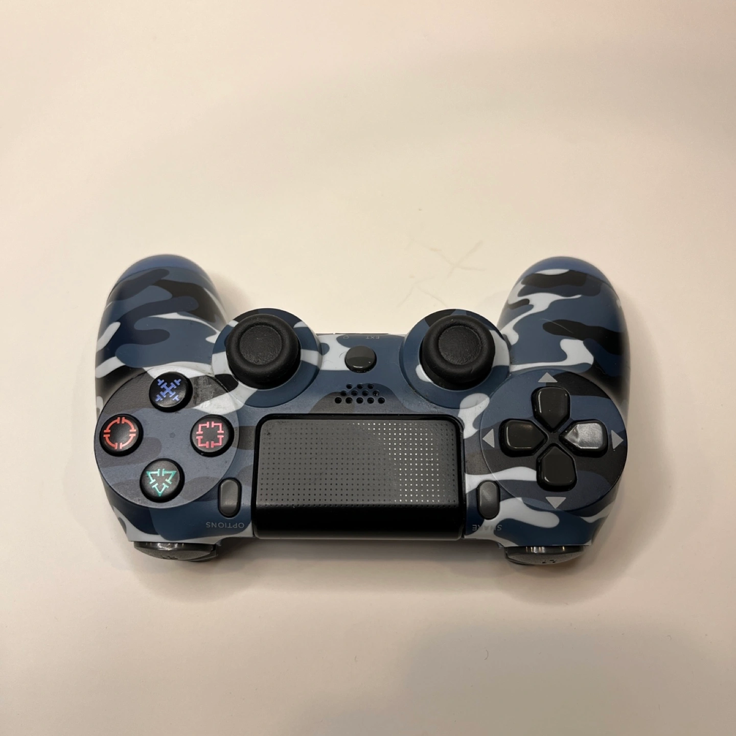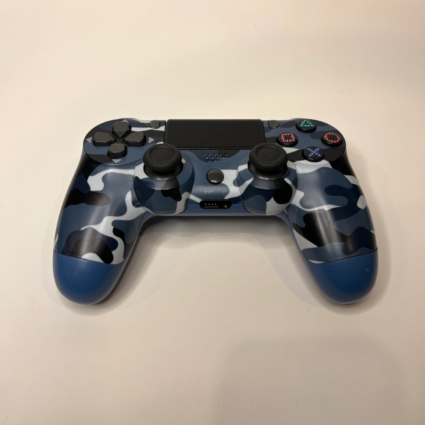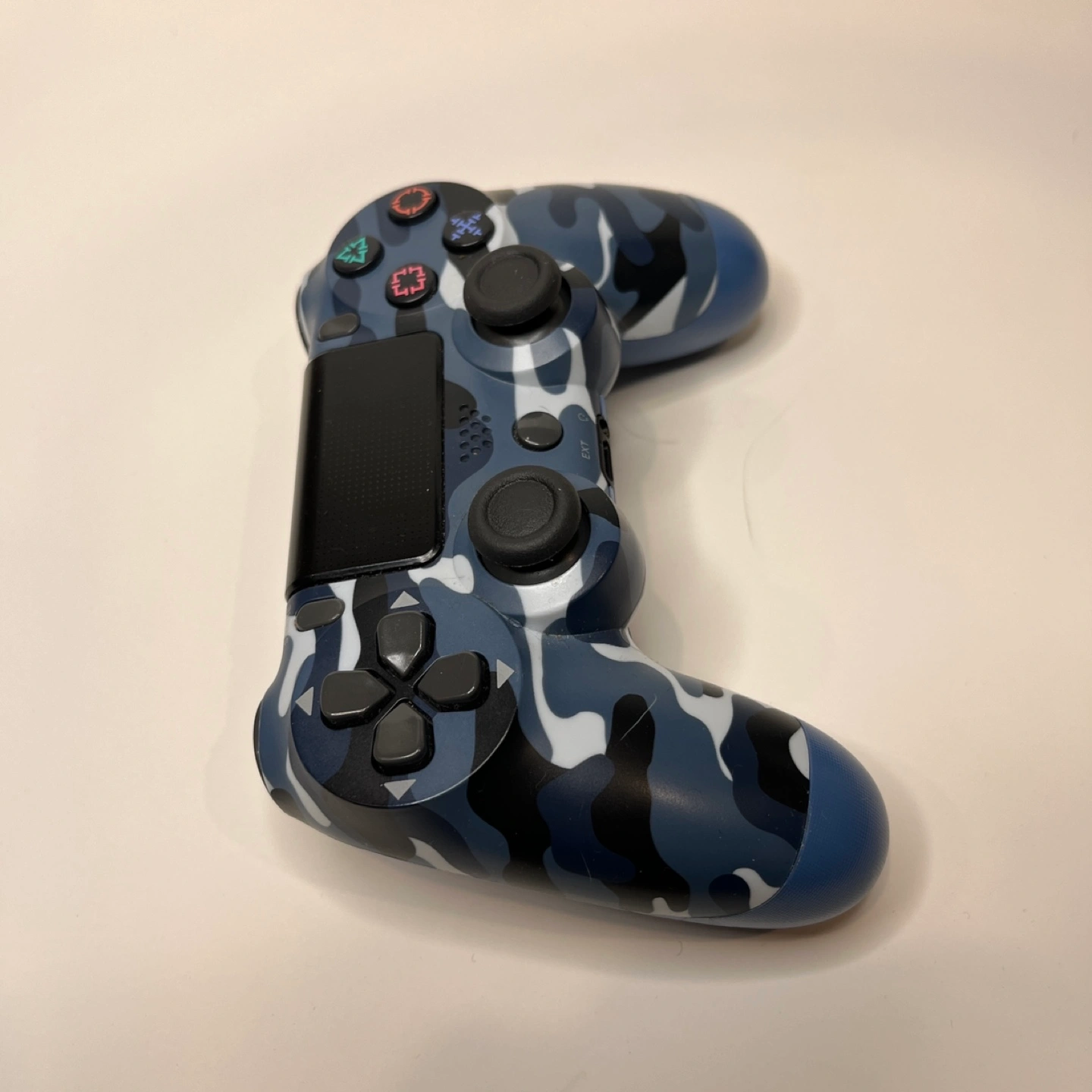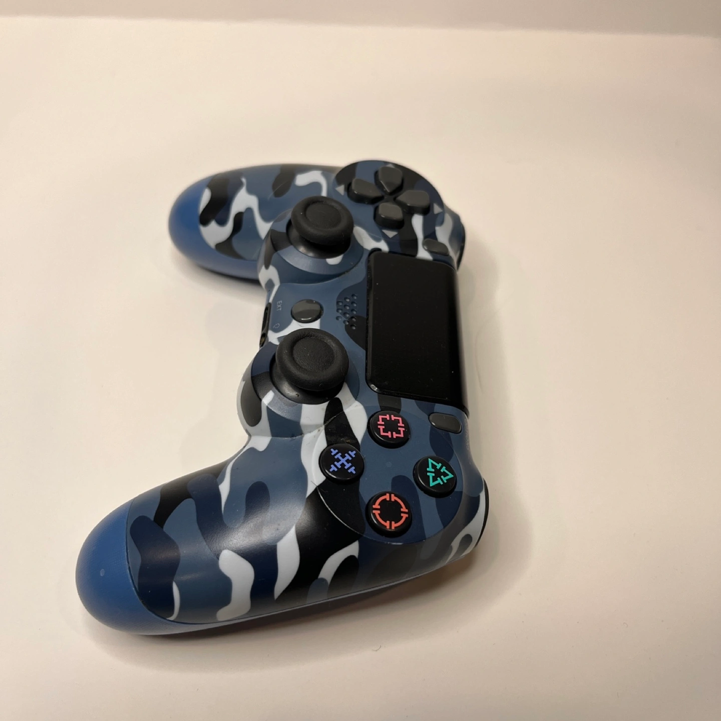 106Wireless controller for Playstation 4. Features a blue and grey camouflage design. Includes all standard buttons and joysticks. Great for gaming. NOTE: This is an unofficial PS4 controller. Doubleshock. Works like mew amd will connect to ps4, ps5 and pc