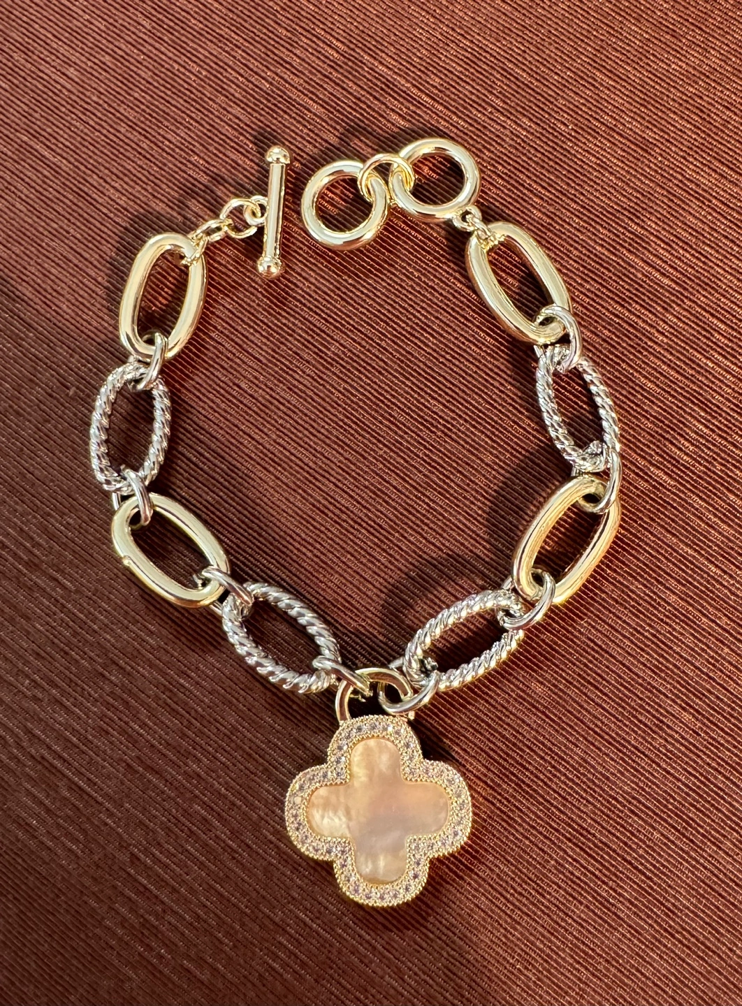 NEW Gold and Silver Chunky Toggle Bracelet, Pearl Clover