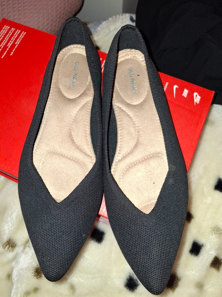Pair of black knit ballet flats. Pointy toe. Comfortable insole. Great for everyday wear. size 9. pick up downtown Vancouver.