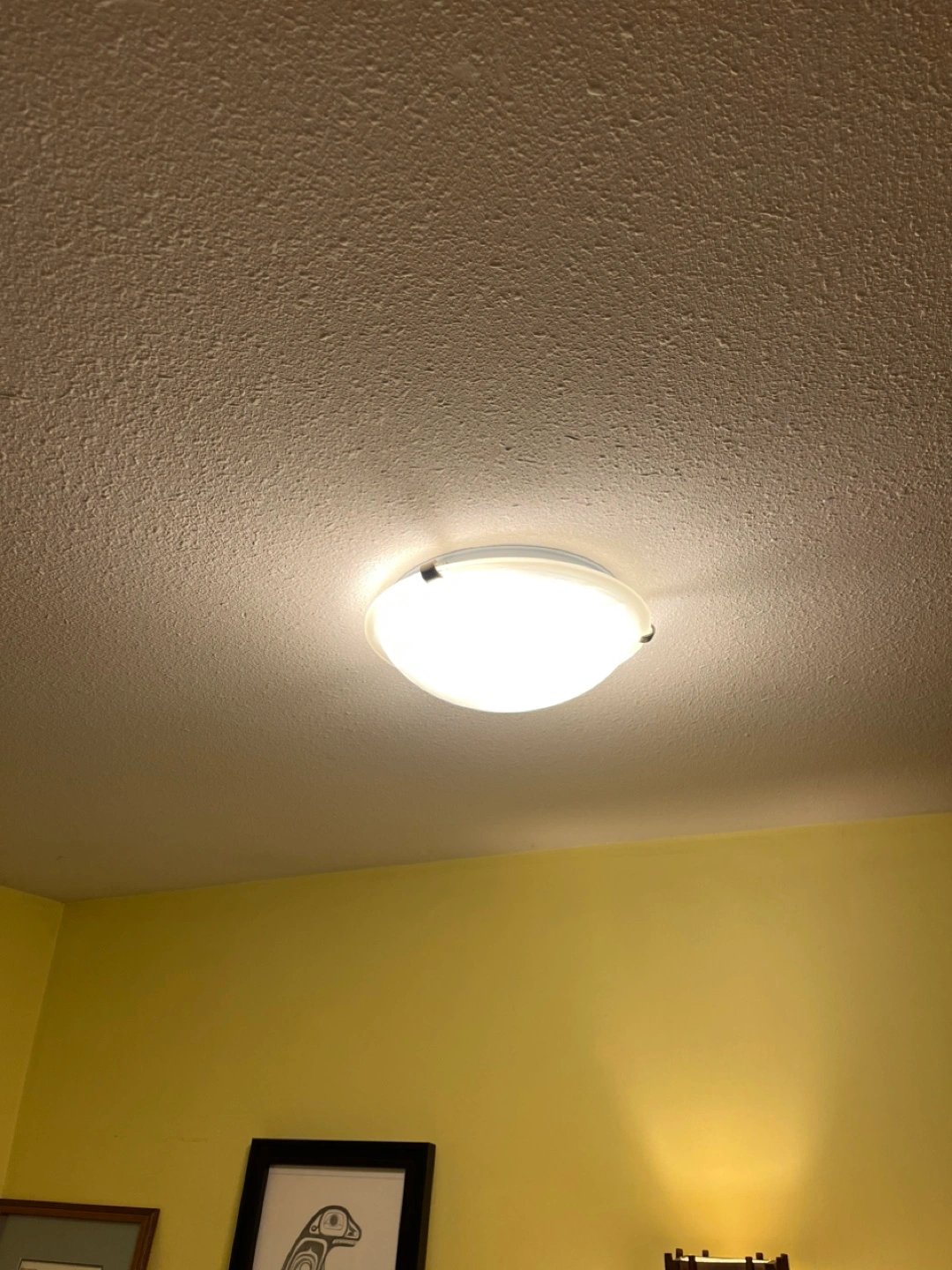 A pair of simple, white ceiling lights in excellent condition. Provides soft, ambient lighting. Perfect for bedroom, hallway, or other small spaces.