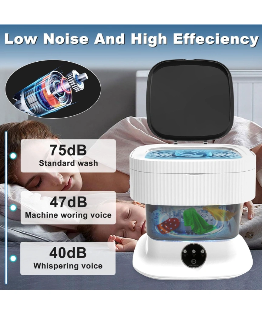 Compact and convenient washing machine. Features 2, 5, and 10 minute wash cycles. Includes a spinner dryer function. Quiet operation. Large 15L capacity.