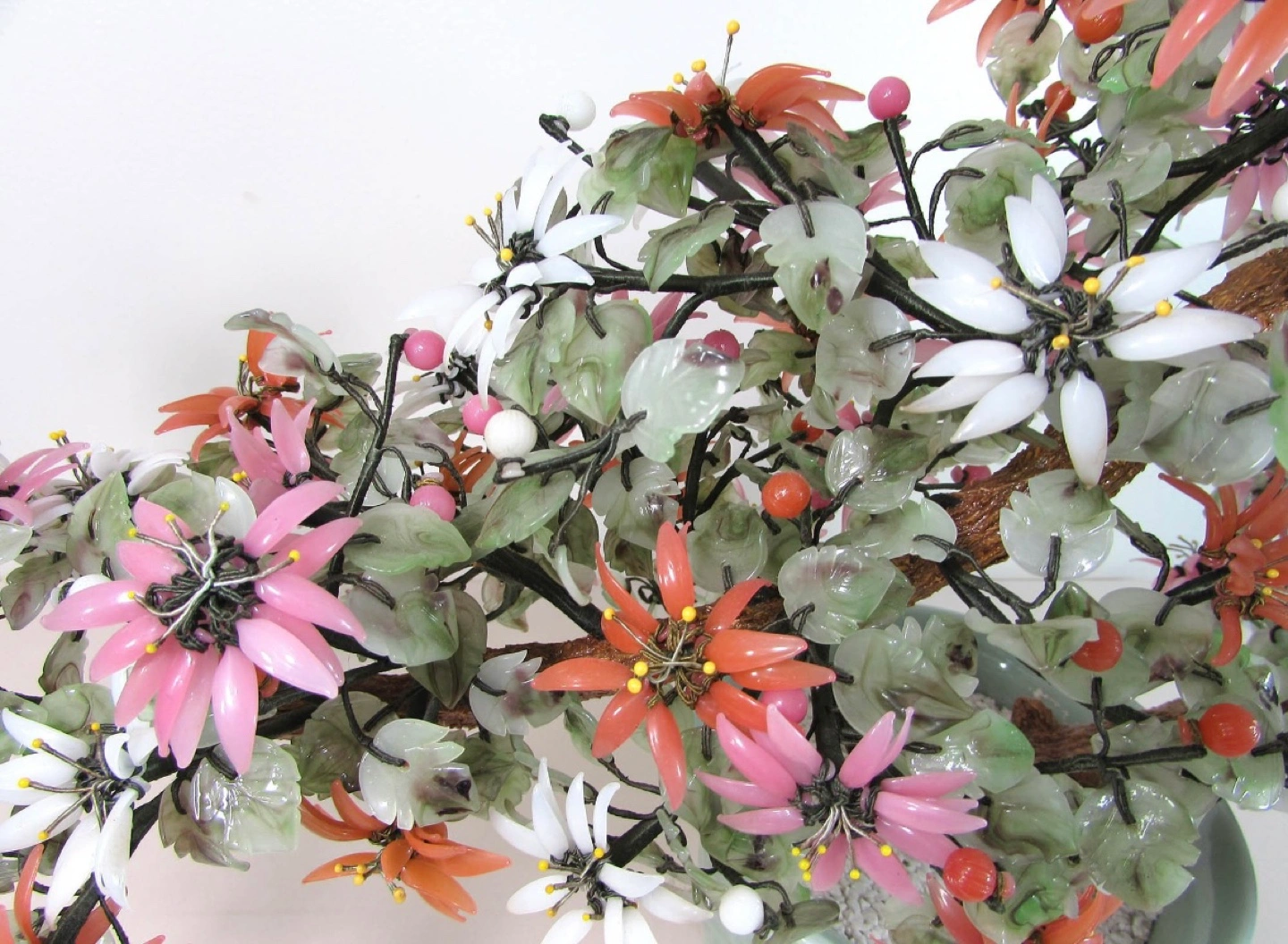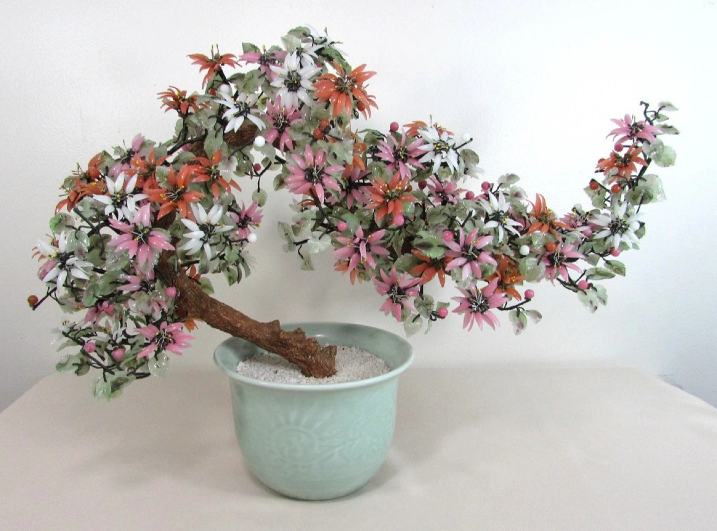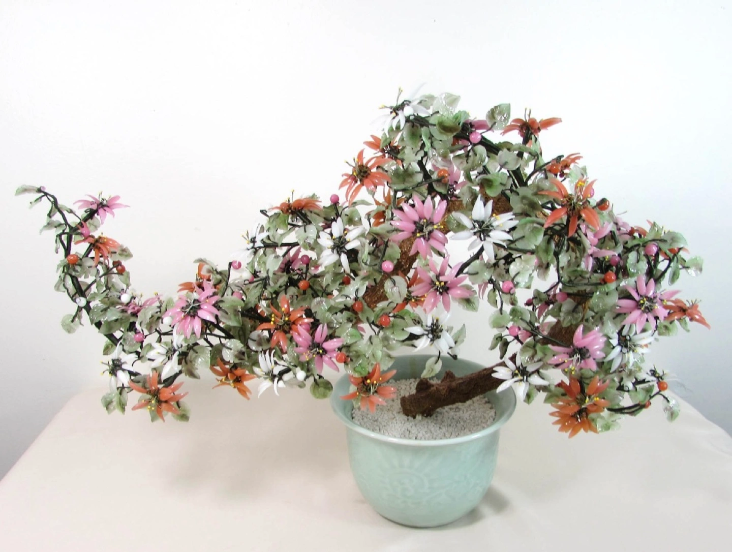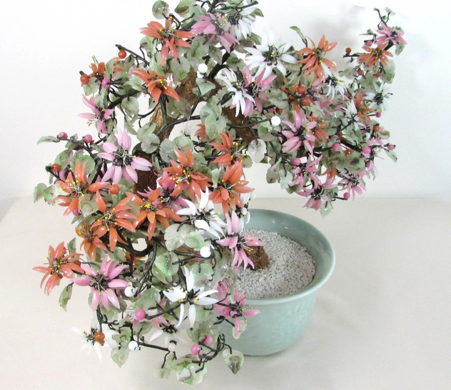Vintage Large 24" Chinese Jade And Glass Bonsai Tree