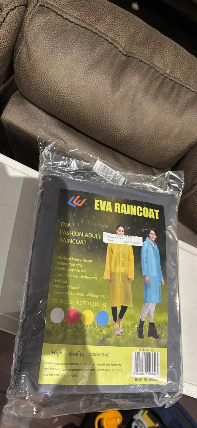 New adult raincoat. Made of heavy-gauge waterproof vinyl. Multi-purpose use. Attached hood. Electronically heat welding seam. Four colours.2 piece color of grey only for cash thanks .