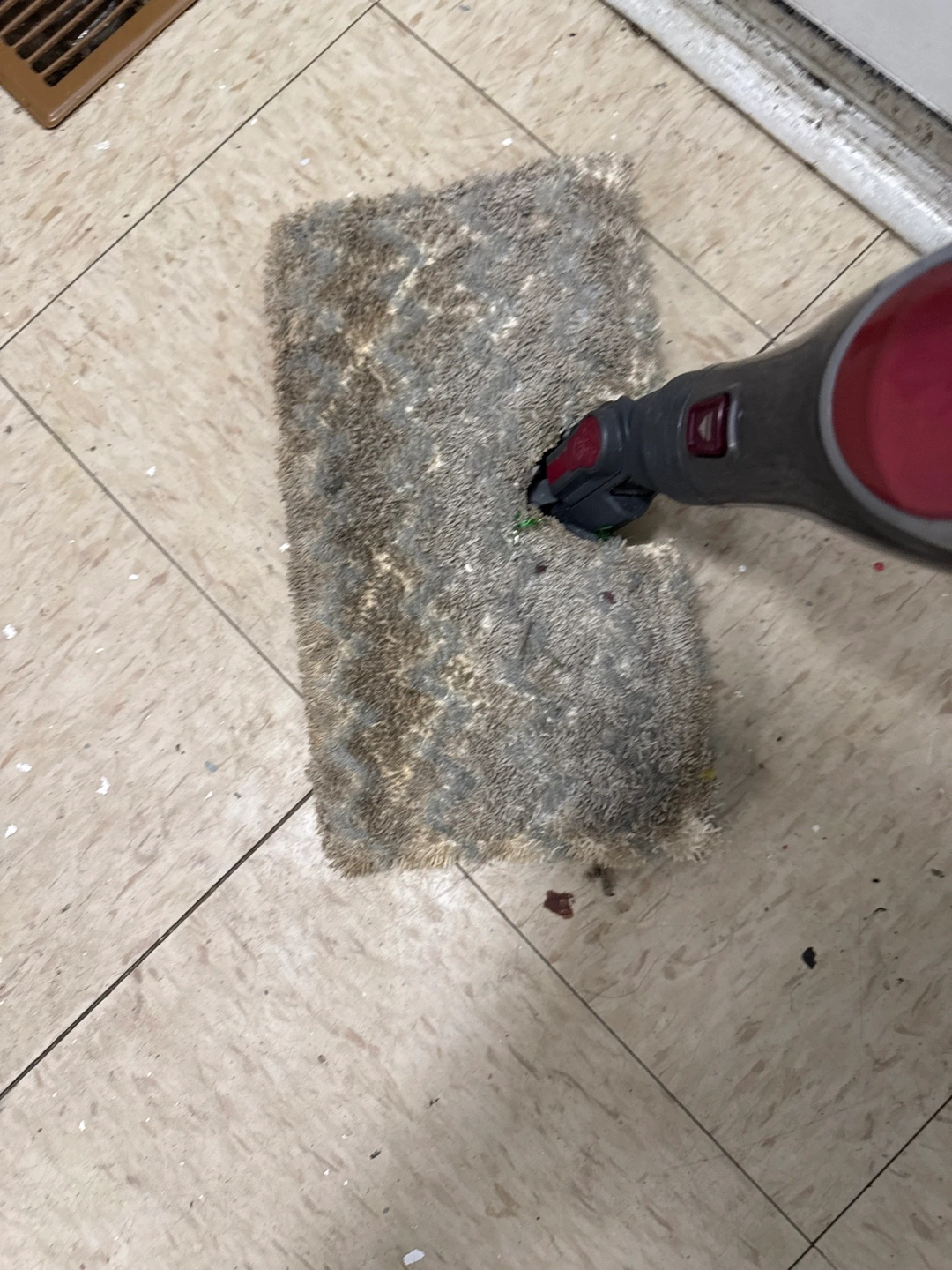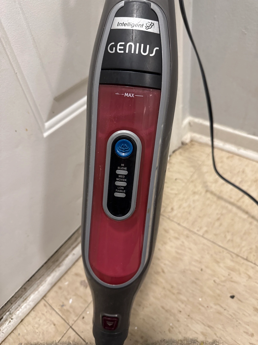 Used Shark Genius steam mop. Features multiple steam settings. Includes mop head. Good condition, some wear and tear on mop head.