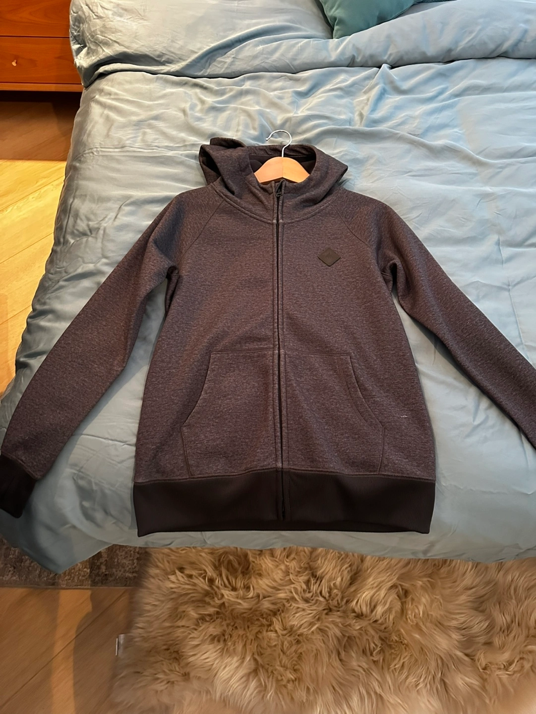 Dark grey colour. Full zip closure. Soft fleece material inside & rain resistant on outside. Excellent condition.