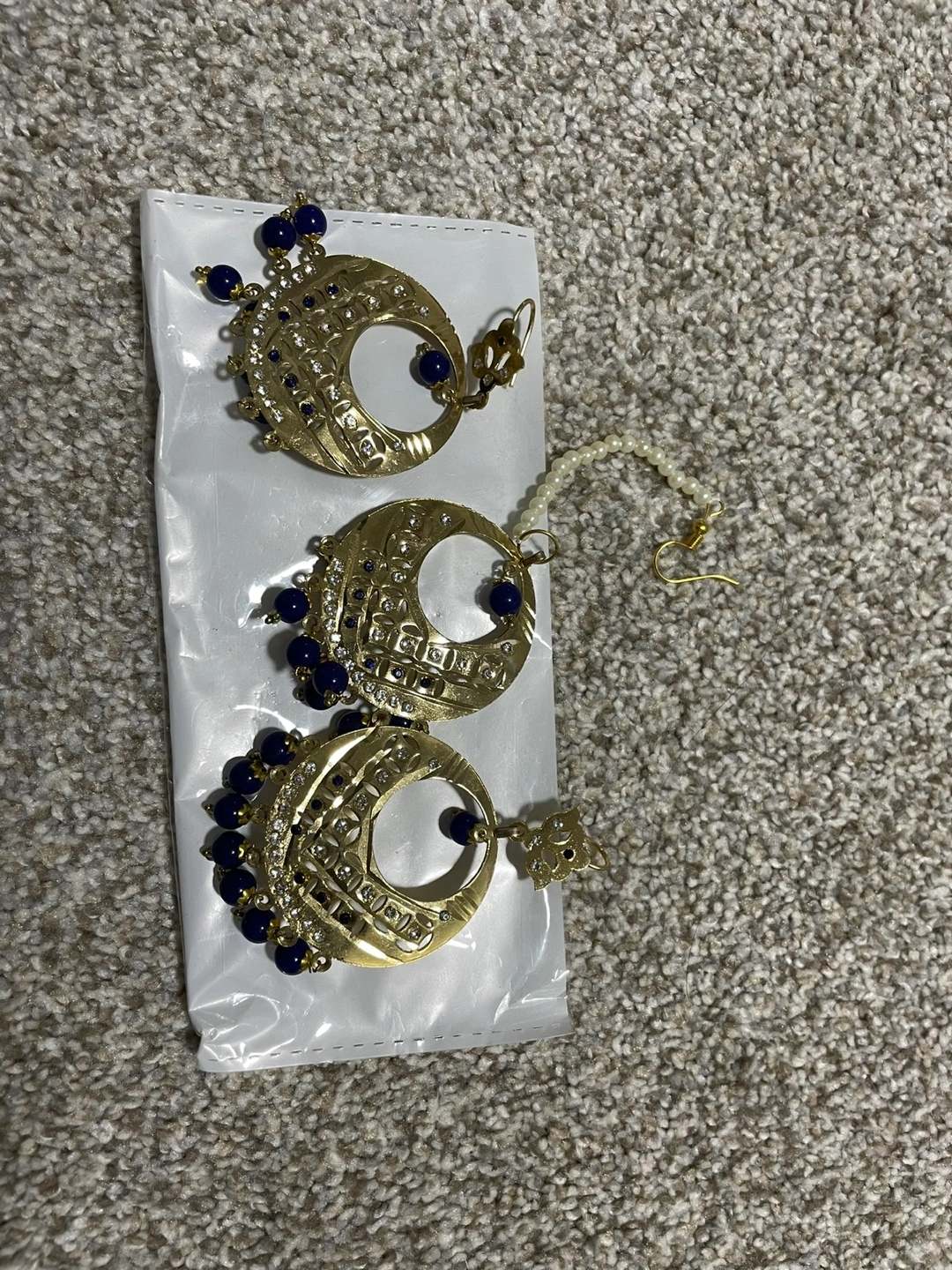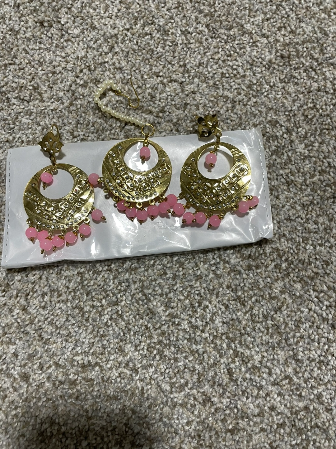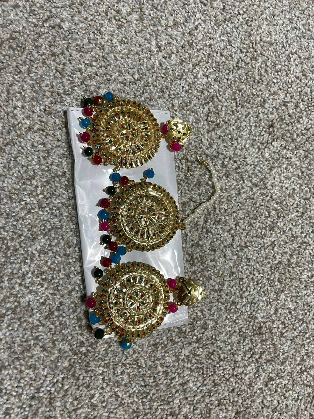 beautiful Indian jewellery sets. Each set includes earrings and a maang tikka. Various colours and styles available. Perfect for special occasions.