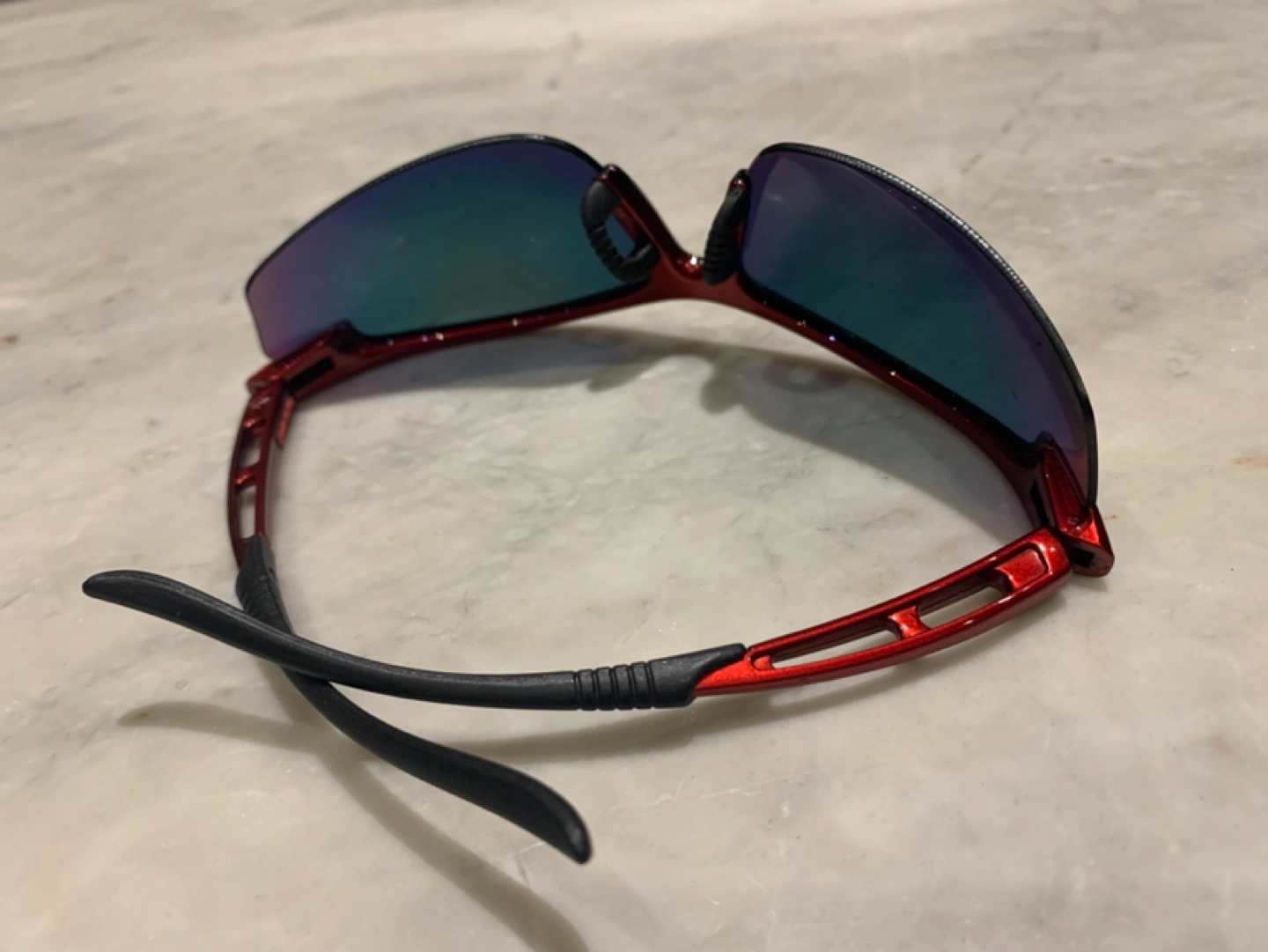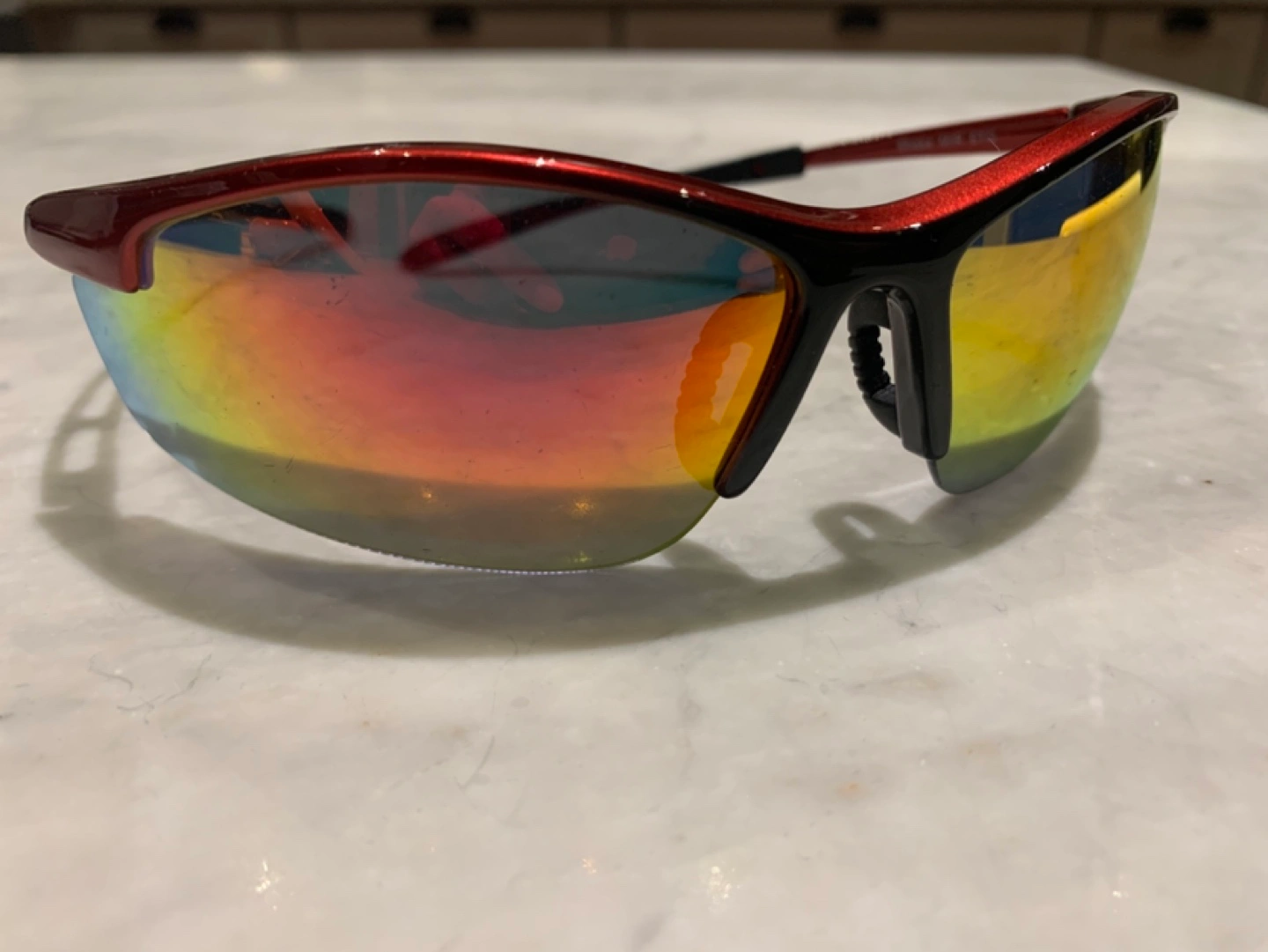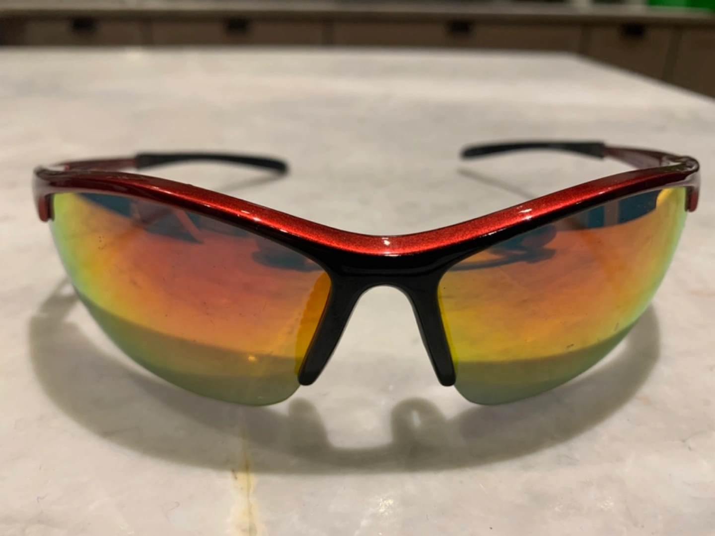Foster Grant Sports Sunglasses β Red & Black Frame with Mirrored Lenses π― Condition: Gently used, in good condition πΉ Brand: Foster Grant πΉ Model: Shake MIR-STG πΉ Frame Color: Metallic Red with Black Rubberized Ear Tips πΉ Lens Type: Mirrored, Multi-color Reflective Finish πΉ Temple Length: Flexible with vented frame design πΉ Nose Pads: Adjustable for a secure and comfortable fit Features: βοΈ Lightweight & Durable Frame: Designed for sports and outdoor activities βοΈ Mirrored Lenses: Reduces glare and enhances visibility in bright light conditions βοΈ Sporty Wraparound Design: Provides full eye coverage and protection βοΈ Comfortable Fit: Rubberized ear grips prevent slipping during movement βοΈ Versatile Use: Ideal for cycling, running, hiking, and general outdoor wear