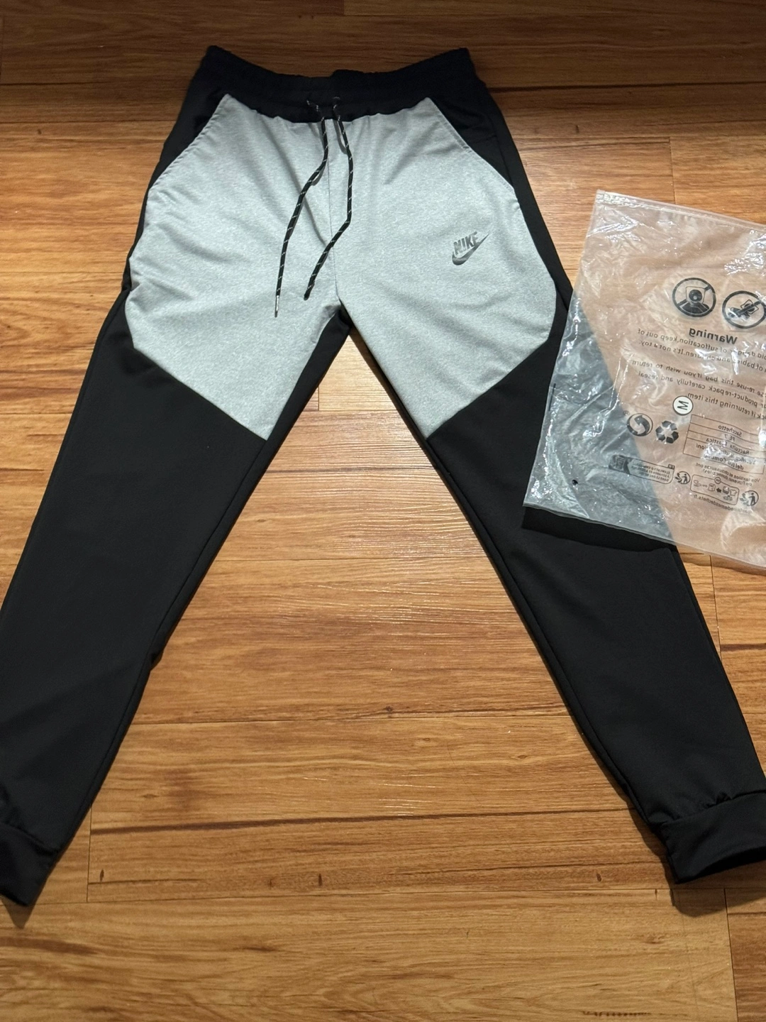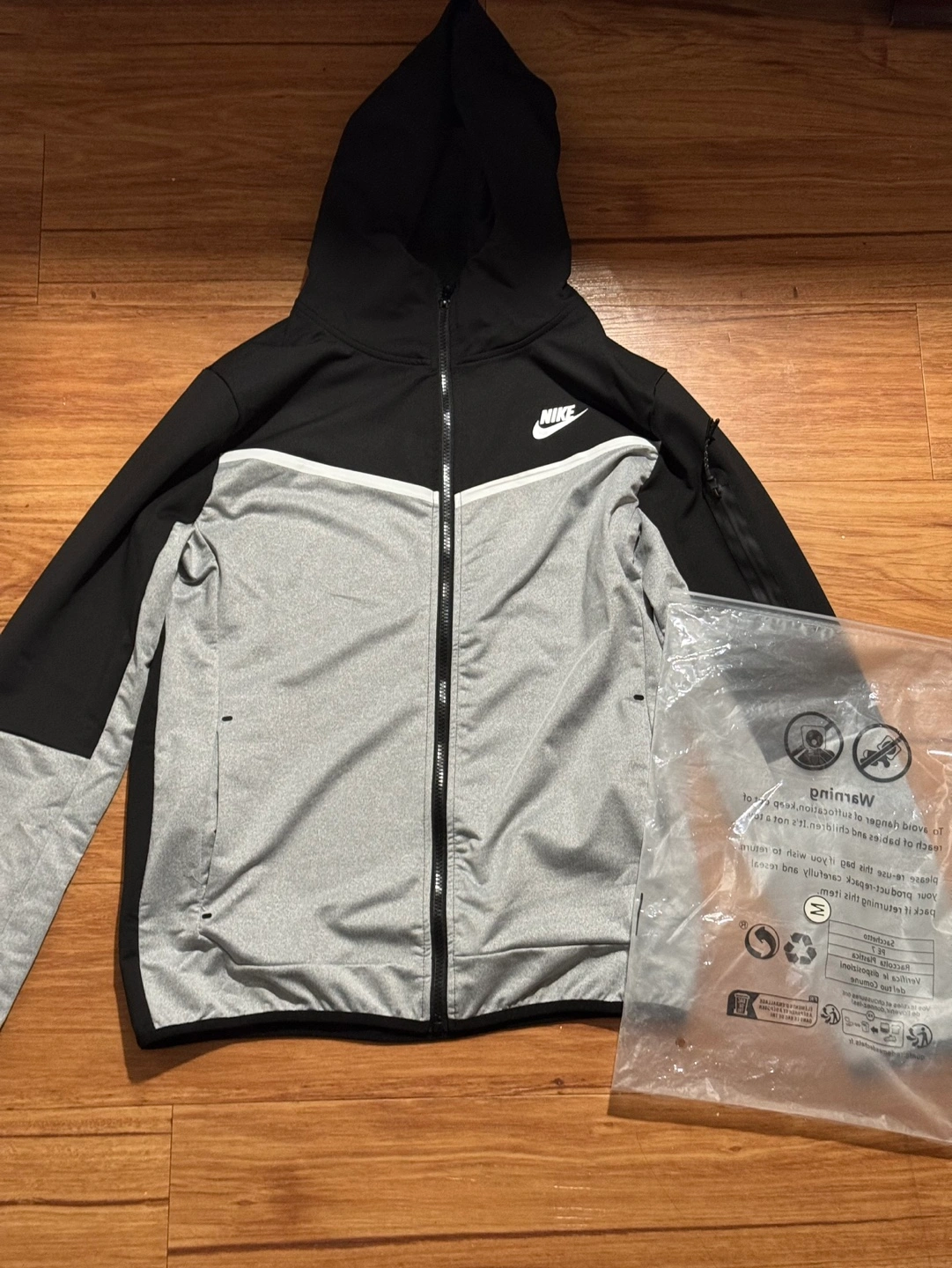 (REP) Nike tech tracksuit. Black and grey colour block design. Full zip hoodie. Elastic waistband joggers. Great for sports or casual wear. (REP)