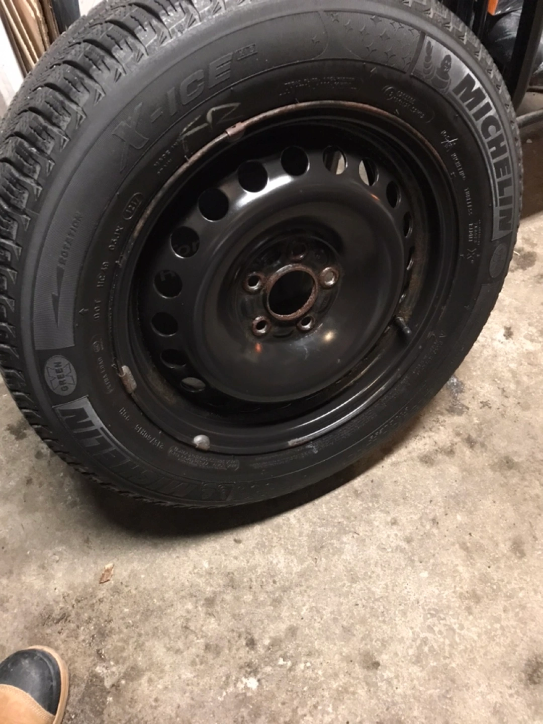 944Used Michelin X-Ice winter tires 4x mounted on a steel rim. Good tread depth. 16” 5 bolt from Ford Taurus No cracks no plugs . Used 1 season