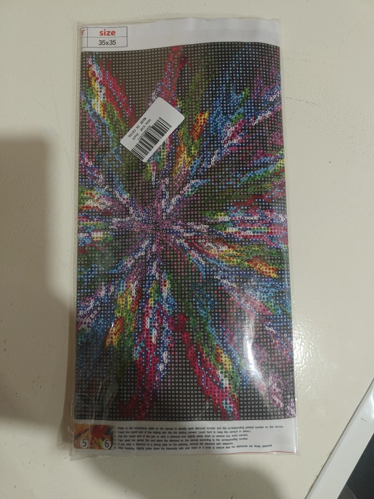 35x35 cm diamond painting kit. Abstract colourful flower design. Includes all necessary materials. New, unopened.