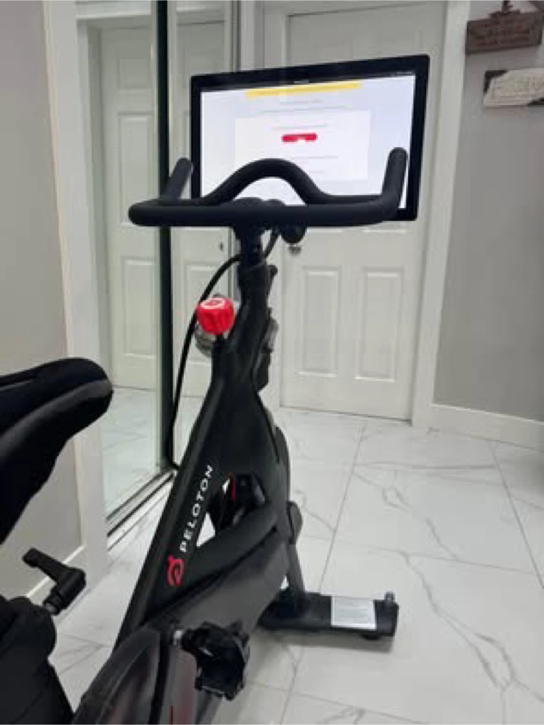 Buy & SellPeloton Bike with ScreenPeloton Bike with Screen$683This is a Peloton bike. It has a large integrated screen for workouts. The bike is black and features adjustable seat and handlebars.WHERE TO MEETMrView MapSELLERMichelle SWilloughby100 reviews0 chats·0 favorites·11 viewsSEND CHAT TO SELLERHi Michelle S! I’m interested in your listing.Hi Michelle S! I’m interested in your listing.Get the Karrot app to chatSign In to chat