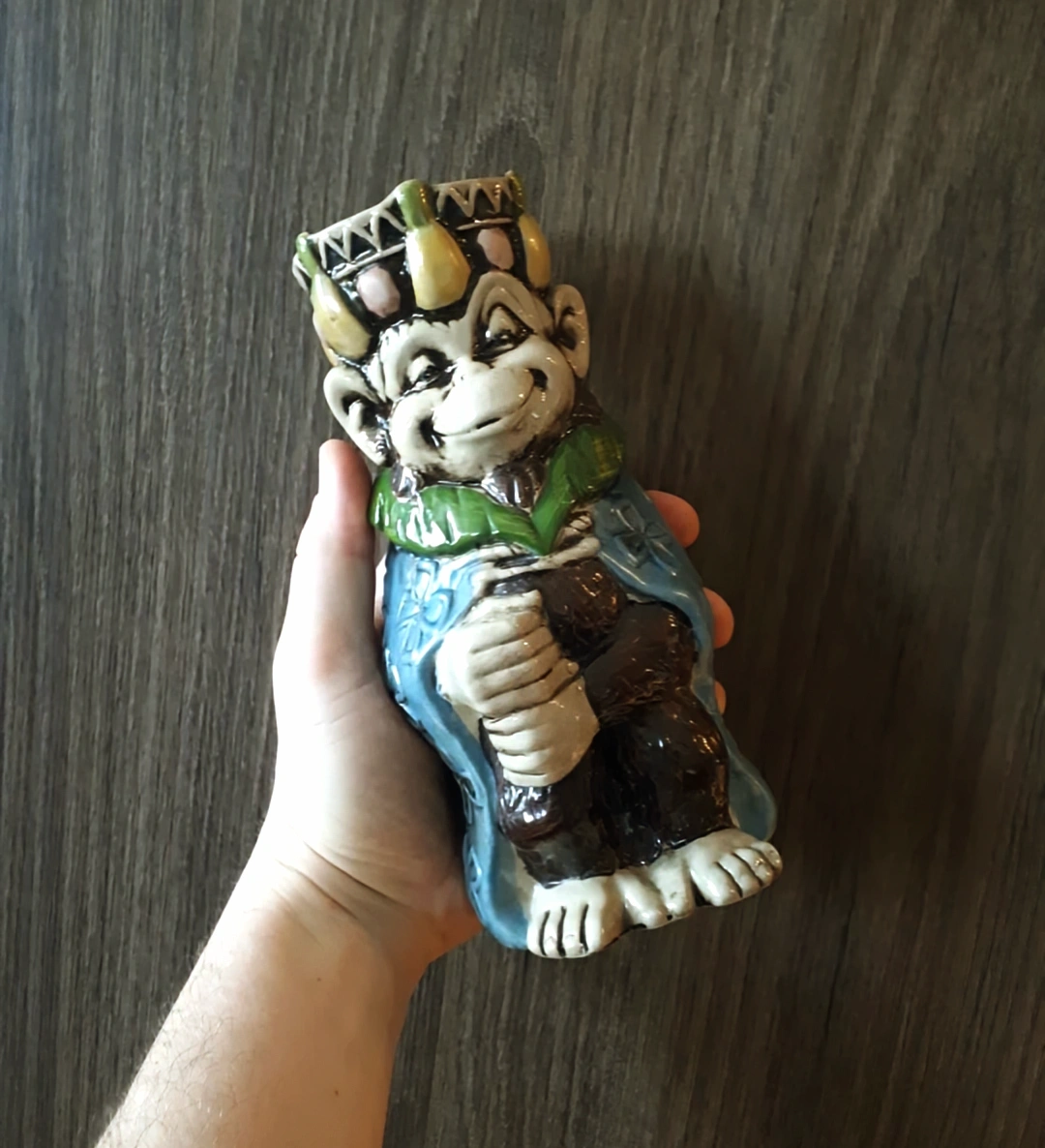 1st edition vintage and rare ceramic tiki mug that Features a monkey wearing a crown and robe. Collectible item, perfect for tiki enthusiasts, or bartenders. Only ever used as decor so in brand new condition.