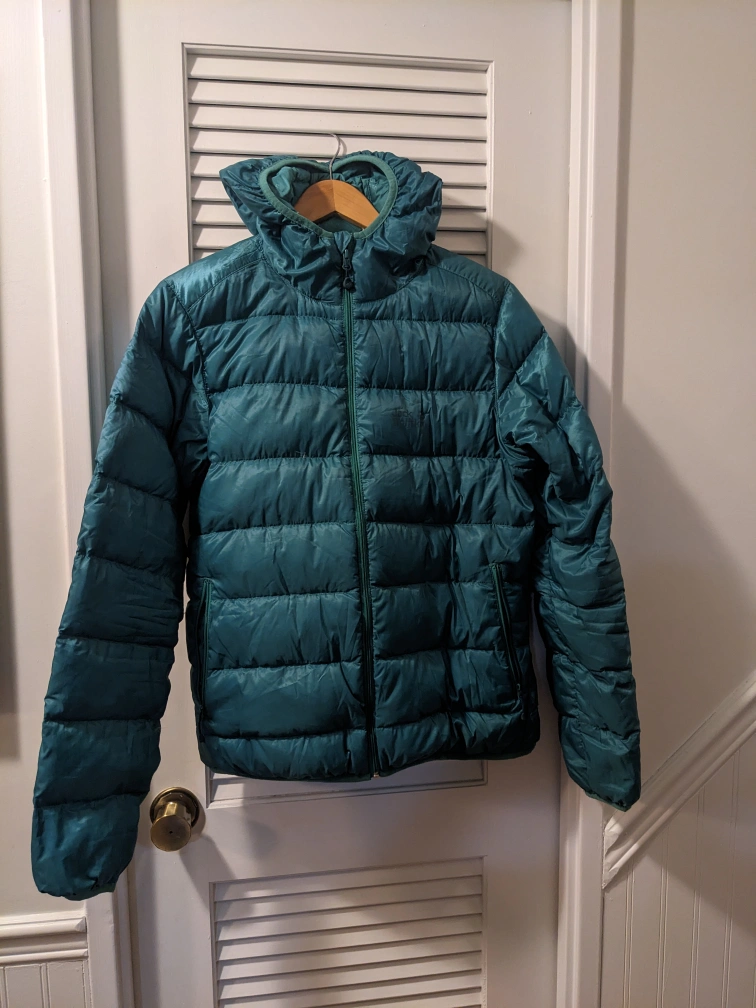 Women's warm teal down-filled hooded jacket. Standard size 42/44 (medium to large). High-quality down insulation. Brought home from Germany, so it's a traveller π