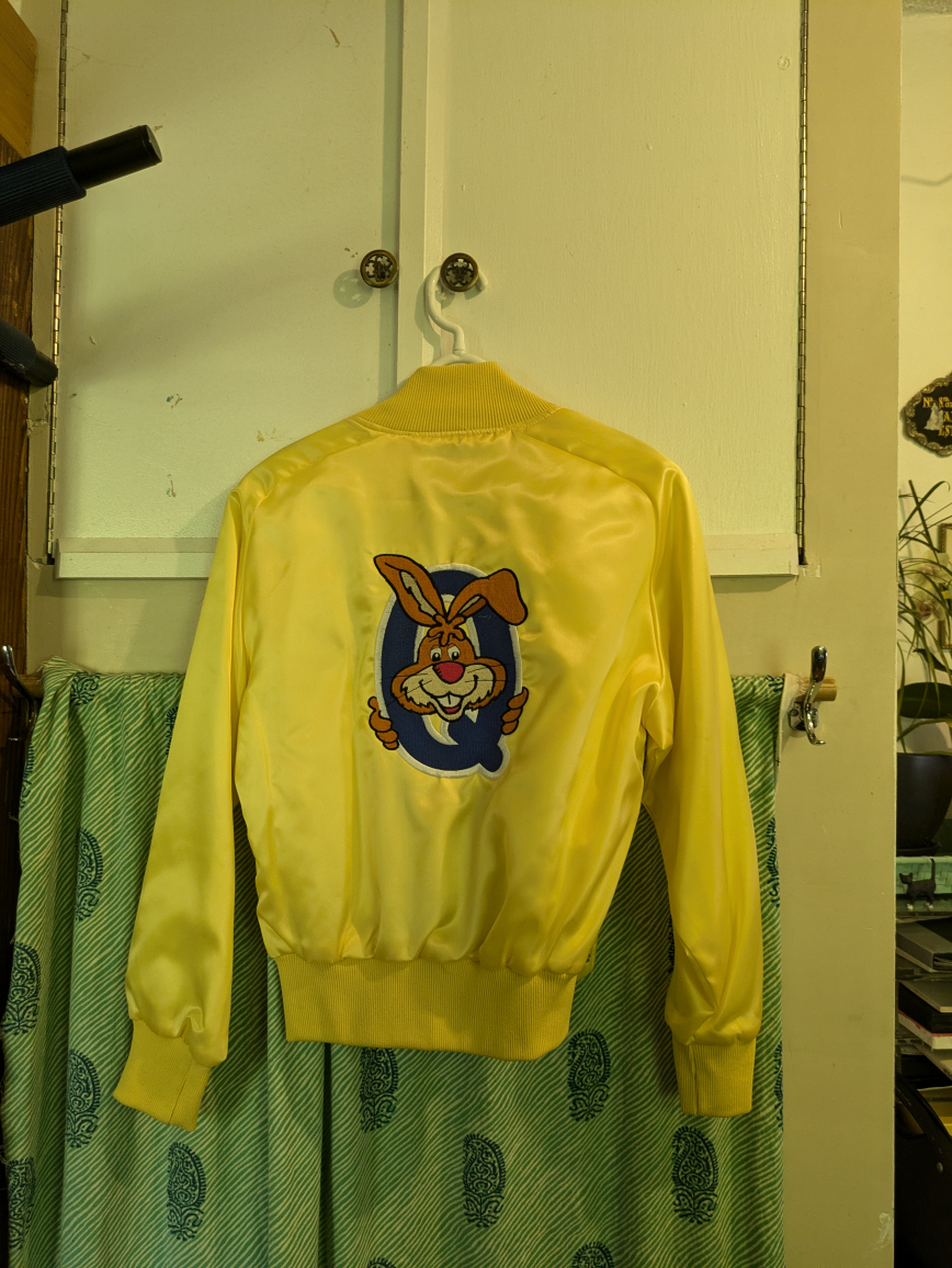 Buy & SellVintage Nestle Quick Jacket XSVintage Nestle Quick Jacket XS$50Vintage Nestle Quick (Nesquik) rabbit bomber jacket. Made in USA. Snap buttons. Good used condition.ConditionGoodSizeXSWHERE TO MEETBroadview StationView MapSELLERJenny SRiverdale261 review1 chats·0 favorites·16 viewsSEND CHAT TO SELLERHi Jenny S! I’m interested in your listing.Hi Jenny S! I’m interested in your listing.Get the Karrot app to chatSign In to chat
