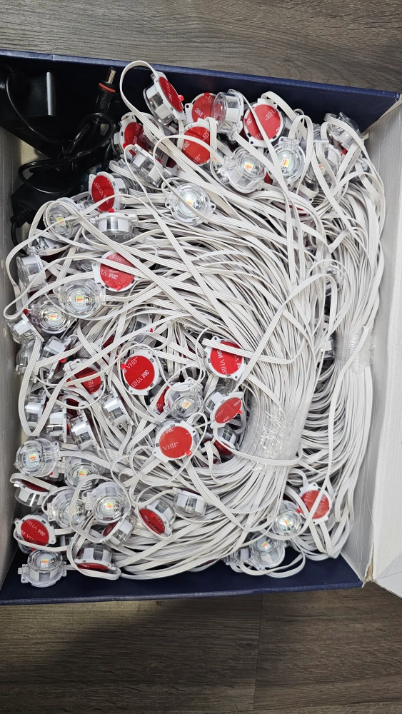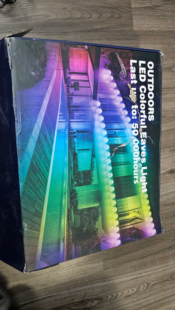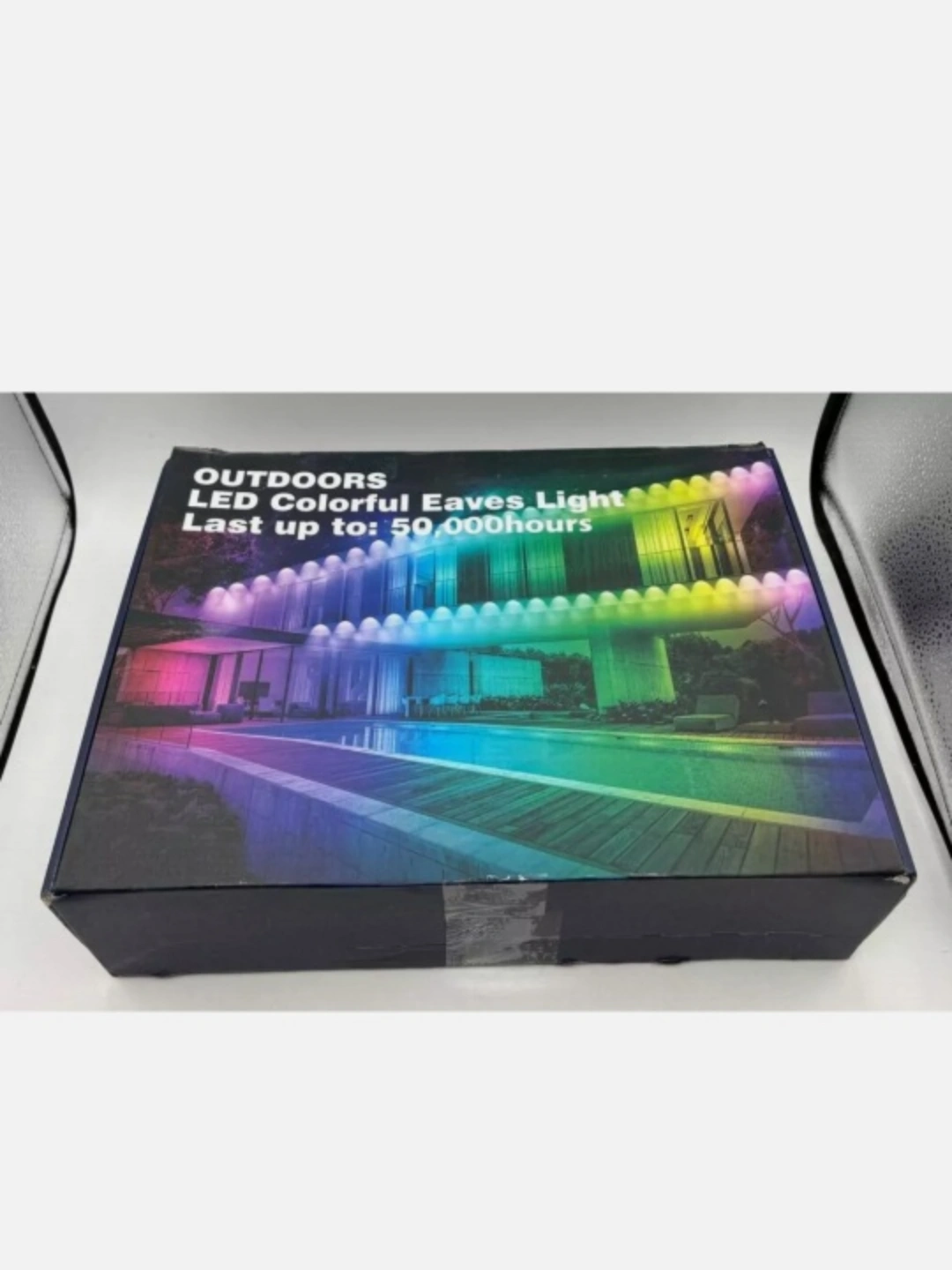 77New in box. LED colourful eaves lights. Last up to 50,000 hours. Includes power adapter and many LED lights. Perfect for outdoor decor.