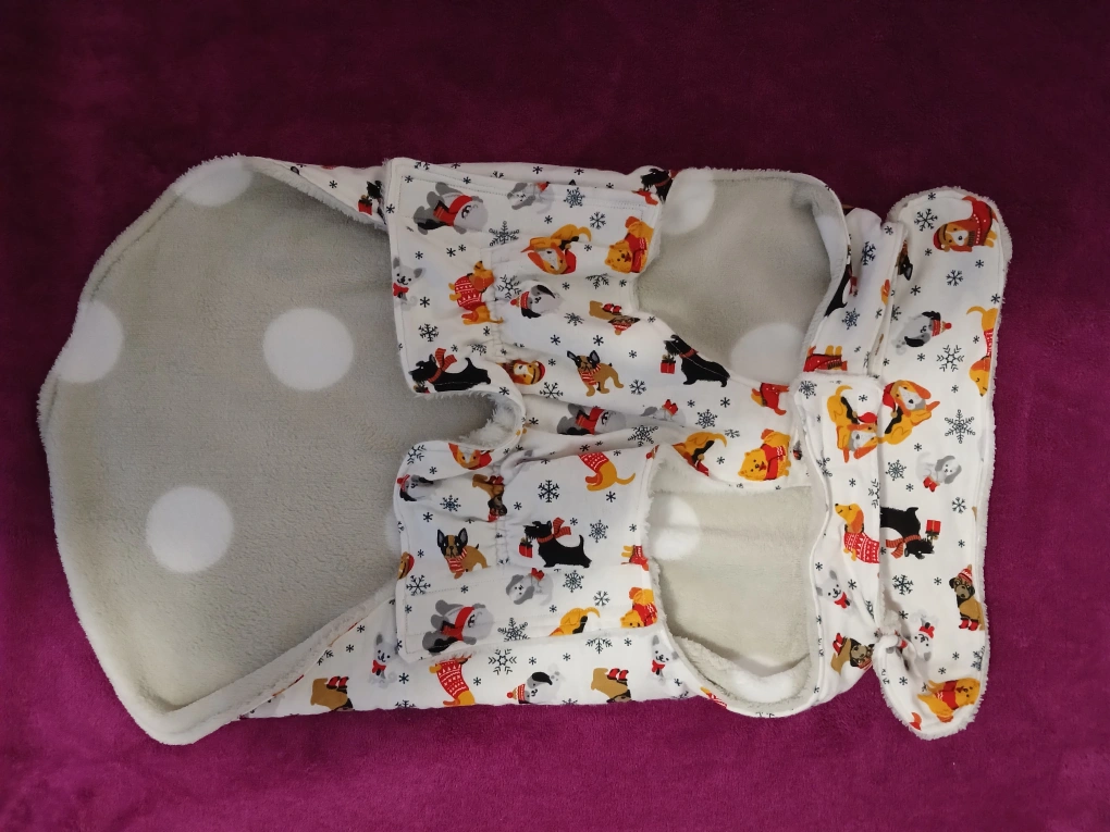 20๐Four unique, handmade dog coats. Festive prints and cozy fleece lining. Perfect for chilly weather. Sizes vary.๐