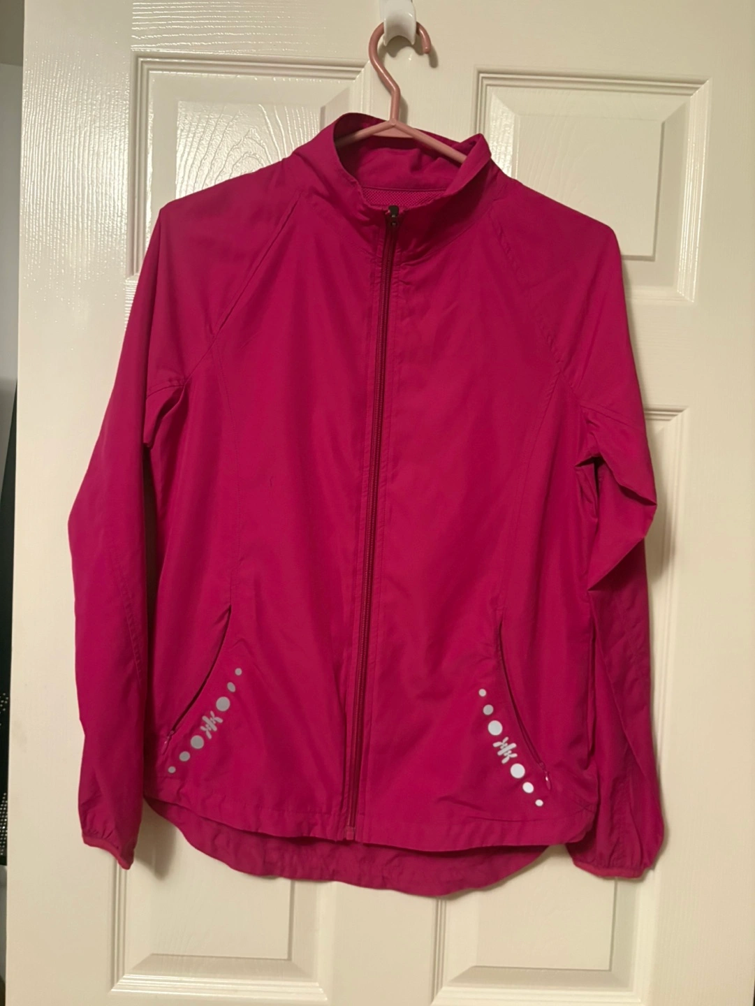 Lightweight, zip-up jacket. Great for running or other activities. Features reflective accents. Small size. Like new condition smoke and pet free home.