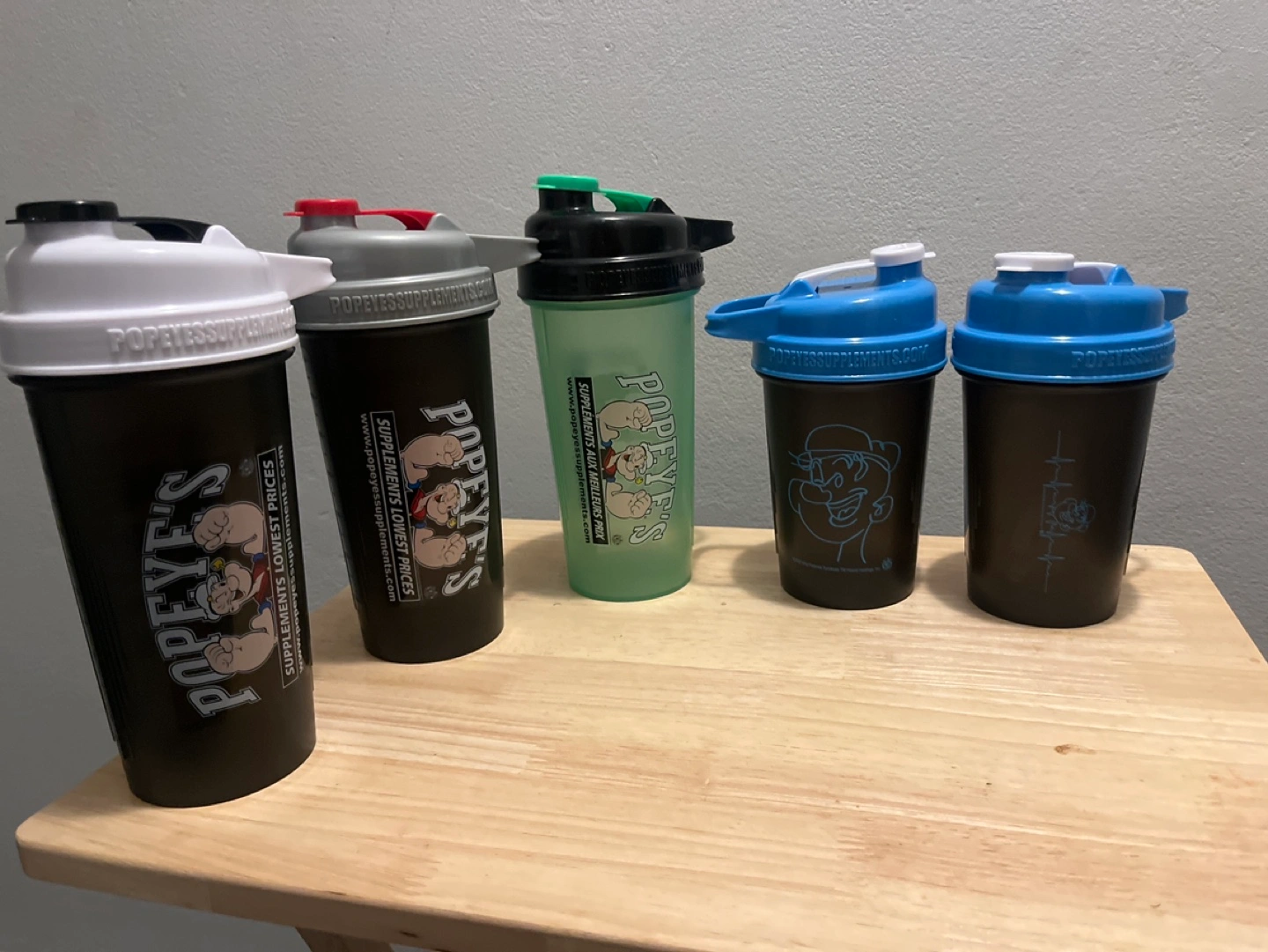 102Sold individually or as a set Various colours and designs. Popeyes Supplements branding. Tall ones 24oz 10$ short ones 16oz 5$